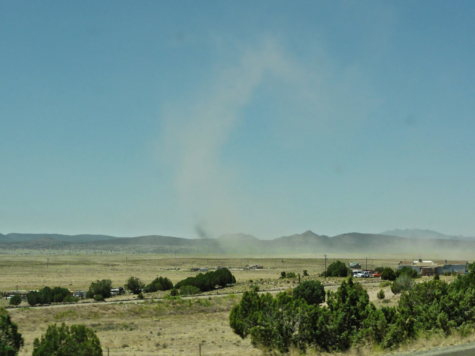 Wir freuten uns auf den Abzweiger auf die Route #66, wir erwarteten etwas Abwechslung. Hmm, davon war leider nichts mehr vorhanden. Gleich zu beginn dieser Geschichtsträchtigen Strasse gab es eine Ansammlung von Läden und Lokalen. Wir dachten, es komme noch vieles auf den folgenden rund 70 Meilen. Damit lagen wir falsch, ausser ein paar zerfallende Häuser und die eine oder andere Tankstelle war da nichts mehr. Schade, Tobi wollte sich doch noch den Bart stutzen lassen ![]()