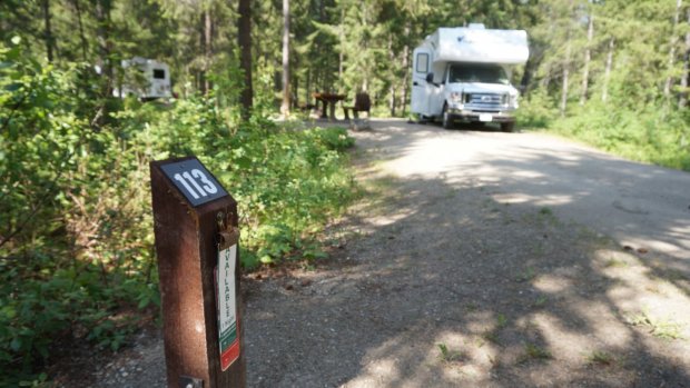 Dort legen wir eine kleine Rast ein und gehen anschließend zurück zum Parkplatz. Von hier aus fahren wir nur noch das kurze Stück zum CG und belegen auf diesem die schöne Site 113 für 28 Dollar.