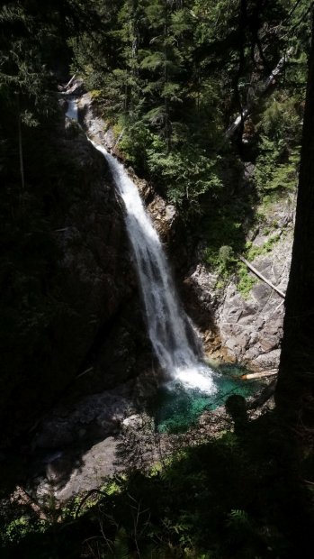 Am Morgen wechseln wir zunächst noch auf eine andere der fcfs-Sites (Nummer 28) und belegen diese mit Gegenständen, bevor es per Wohnmobil zum Upper Myra Falls (Trail über 9 km) und danach zu den Lower Myra Falls (Trail über 2 km) geht, wobei der zweite Trail den deutlich schöneren Wasserfall aufweist. Leider merkt meine Freundin zusehends ihre Knie und so sind die letzten Meter ein echter Kraftakt.