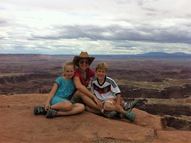 Dann geht es weiter zurück aus dem Park, vorbei an verschlungenen Holzzäunen in den benachbarten Canyonlands NP, wo wir uns einen Besuch der Island in the Sky-Section vorgenommen haben. Der erste Stopp dort: klar, das Visitor Center, wo die Kinder wieder einmal ihre Mama vorschicken, um Junior Ranger Booklets zu holen. In diesem Park sind sie vom Alter her sogenannte Rowdy Rabbits, zumindest zu Niki passt diese Bezeichnung ja! Da es angefangen hat zu regnen, bleiben wir länger als geplant drinnen und schauen uns den Film über die Entstehung des Parks an. In den USA fängt die Schule bald wieder an und wir sind mit unseren Kindern – neben den anderen Touristen – als Familie eher in der Minderheit. Die meisten Besucher sind Rentner, die sich dem Nomadendasein verschrieben haben. Wir kommen mit einer netten Dame ins Gespräch, die uns erzählt, dass sie ihr Haus in San Francisco gegen eine kleine Wohnung und ein großes Wohnmobil getauscht haben und seit zwei Jahren praktisch nonstop auf Tour sind. Beneidenswert!