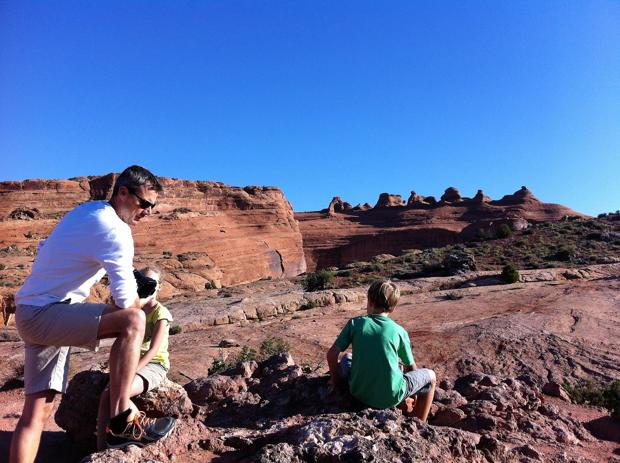 Auf der Fahrt aus dem Park fahren wir noch beim Delicate Arch vorbei - gestern Abend waren wir schlicht und ergreifend zu faul, um nach der anstrengenden Wanderung am späten Vormittag auch noch am Abend das Wohnmobil wieder startklar zu machen, um den Sonnenuntergang dort zu bewundern. Das sind die Momente, in denen man die Zelter beneidet!