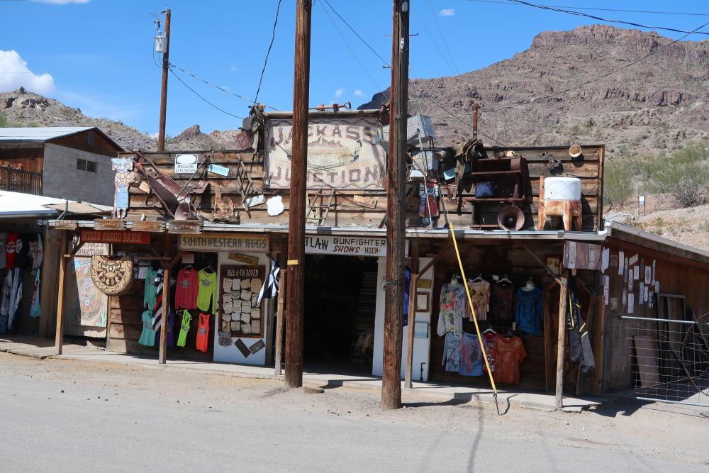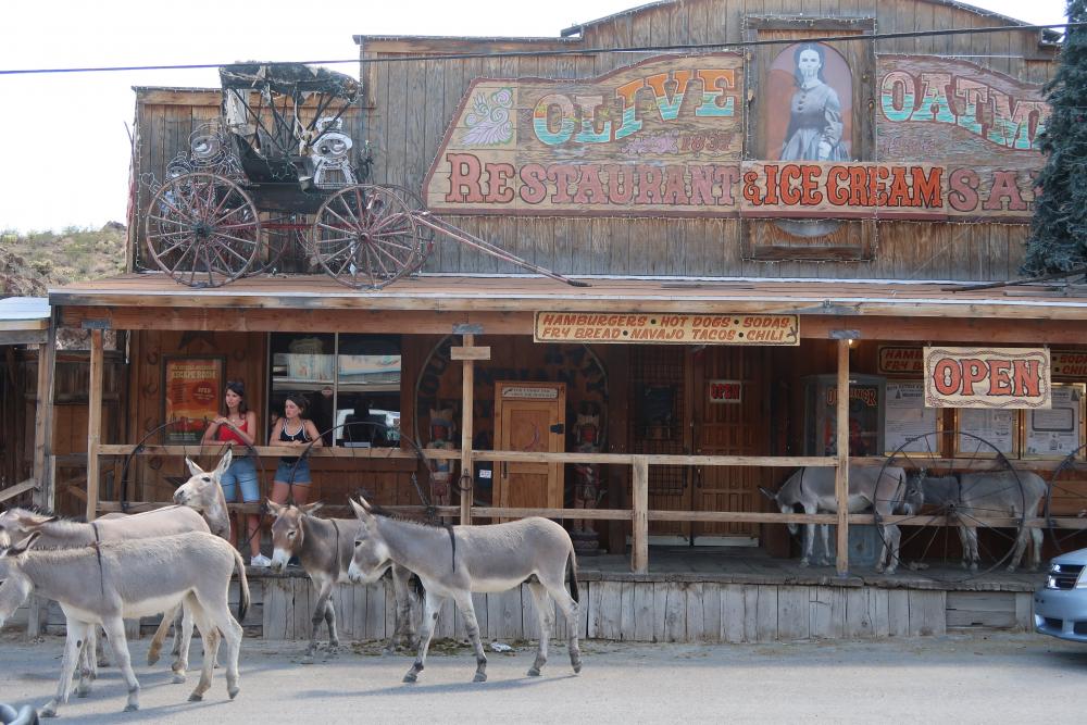 Ein Teil unserer Fahrt führte uns über die Route 66. Trotz der noch immer sehr heissen Temperaturen machten wir in Oatman halt. Dieser Ort hat den Charakter der alten Route 66 behalten und was diesen Ort so speziell macht, sind auch die wilden Esel, die einfach so auf der Strasse im Dorf herumlaufen. Zwischendurch betraten wir immer mal wieder kurz einen der vielen Souvenirshops, um etwas abzukühlen.