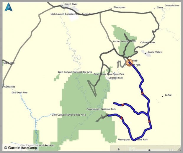 Die Fahrt zurück nach Moab war natürlich weniger reizvoll, weil doppelt und irgendwie haben wir offensichtlich auch erstmal genug rote Steine, Bögen und Schluchten gesehen. Wenn auch im wesentlichen Hausaufgaben in Form von Wäsche waschen und Online-Banking angesagt waren, so freuen wir uns dennoch auf unseren bekannten Canyonlands CG in Moab und die Brewery als Belohnung am Abend.