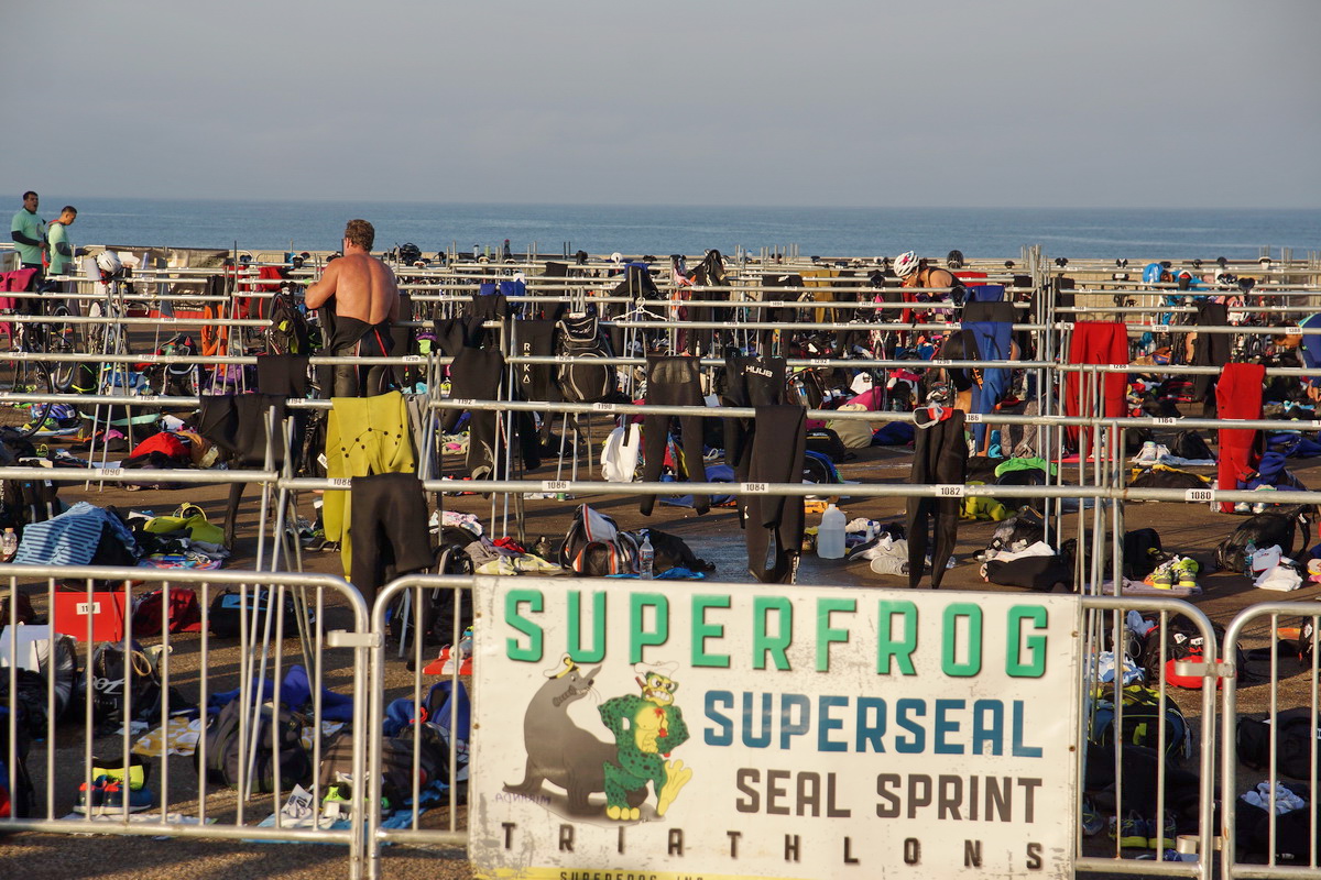 Am Morgen Triathlon Start vom Parkplatz beim CG, die Ansagen hatten uns seit dem Sonnenaufgang in unserem Womo "unterhalten" ; eine Fahrbahn für Radrennen gesperrt, aber wir dürfen in einer kurzen Pause queren - keine sign. Verzögerung.