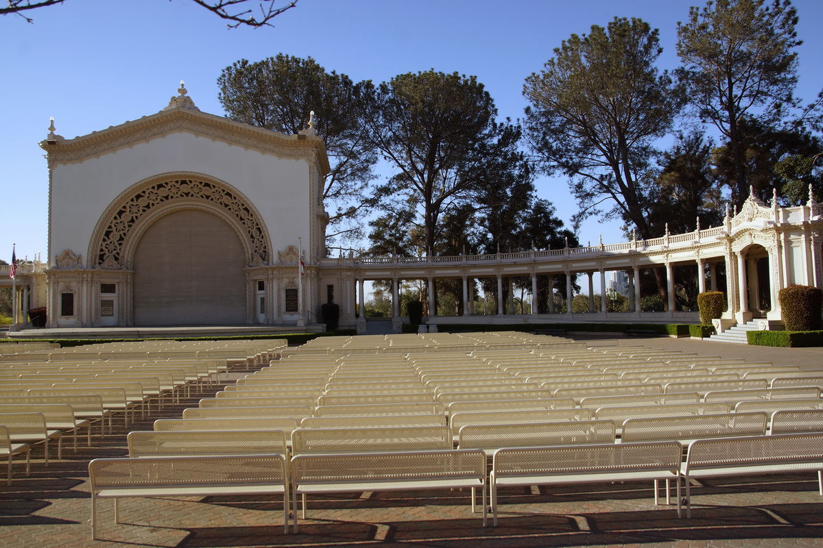 Geschenk an San Diego zur Ausstellung 1915 von Vater Spreckels „Sugar Magnat“ -- weltgrößte Orgel; komplette Restaurierung 1980 – 3x/Woche öffentliche Konzerte --- zw. 1970 und 1980 beschädigt, ab 1981 Restaurierung für 1,1 Mio USD