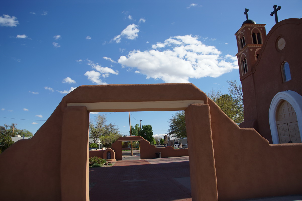Dann fahren wir über dem Hwy-380 über Berg und Tal mit viel Wind nach Socorro, dem Zentrum des Rio Grande Tales und schauen uns dort in der Kirche San Miguel und auf der Plaza um.