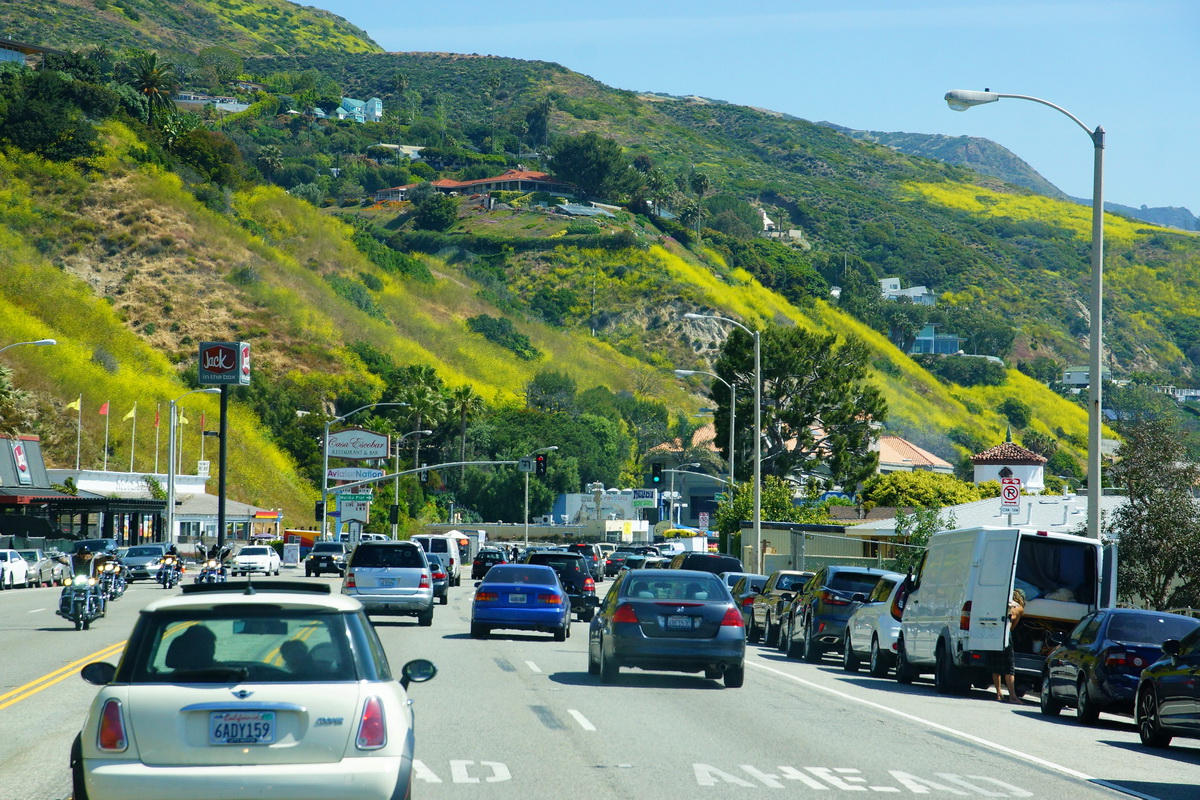 Um 11 Uhr pünktlich fährt uns der Shuttle noch mit einer anderen Familie zum Airport. Der Fahrer nimmt den Weg durch den Malibu Canyon zum Pacific Coast Highway, so dass wir in flotter Fahrt auch nochmals den Pazifik sehen.