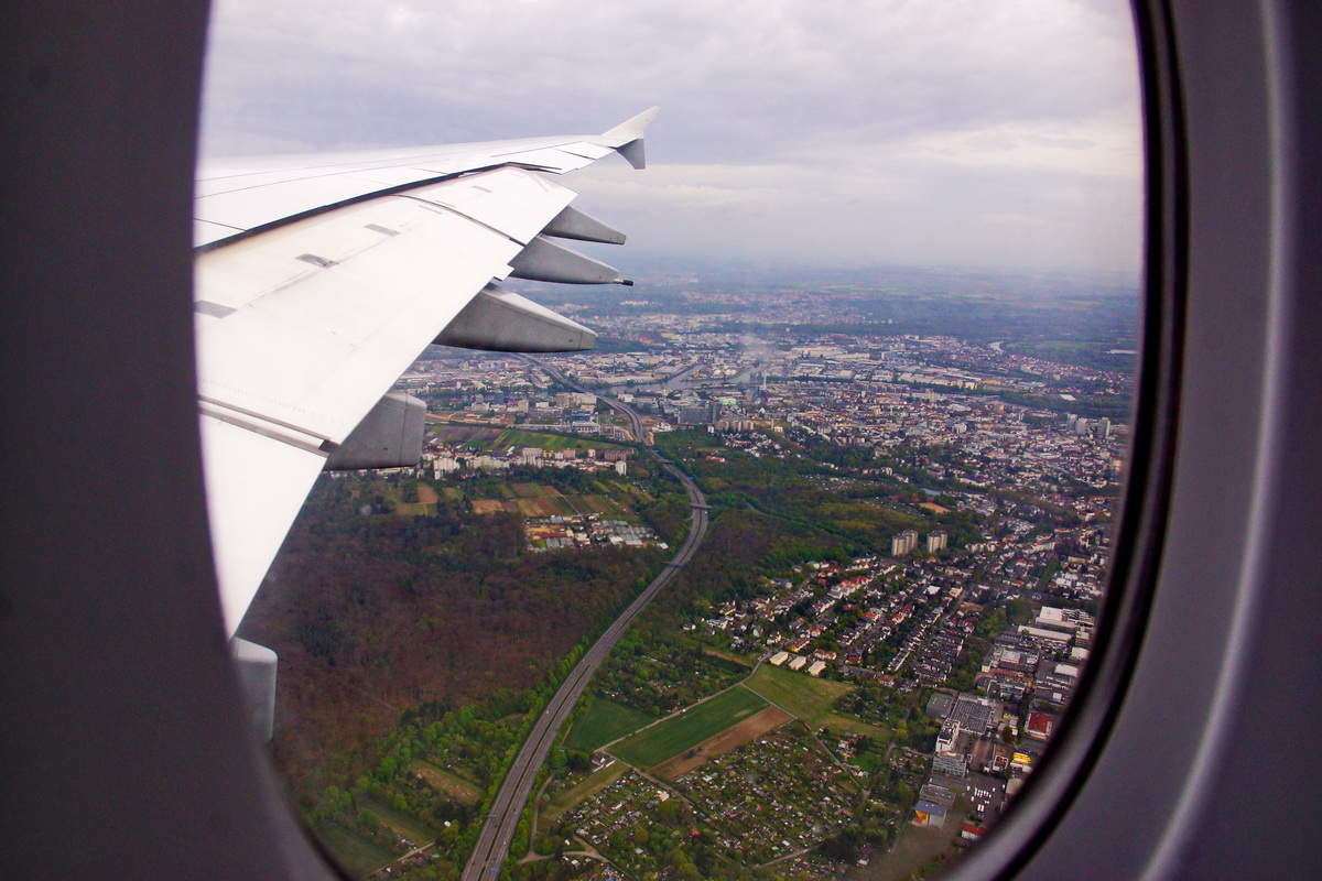Abflig mit LH 457 um 15:25 Uhr mit Blick auf die Berge --- Landung in Frankfurt am Ostersonntag um 11:20 Uhr und anschließend Fahrt zu unserer Tochter in der Umgebung.