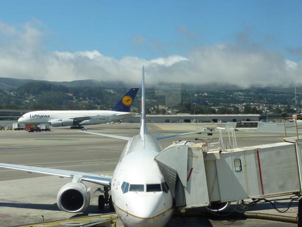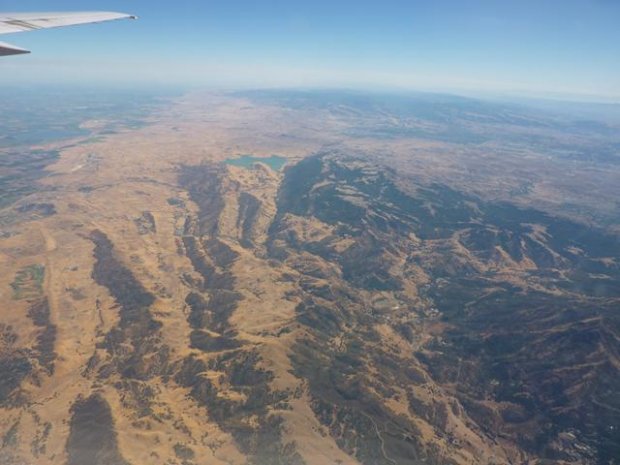 Wie gerne hätte ich jetzt lieber auf der linken Fliegerseite gesessen... ein Blick auf die Golden Gate - ach, aber die hat sich sicher wieder benebelt.