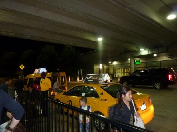 Beim Ausgang aus dem Flughafen ist die Hölle los. Es ist 22 Uhr. Wir werden sofort von einer Horde beförderungswütiger privater Taxiunternehmer belagert. Da ich aber im Reiseführer gelesen habe, man sollte aus Sicherheitsgründen nur ein offizielles YellowCab nehmen, lassen wir die Privaten links (und rechts) liegen, und gehen zu den Yellows. Schön der Reihe nach abgefertigt, alles ganz entspannt.