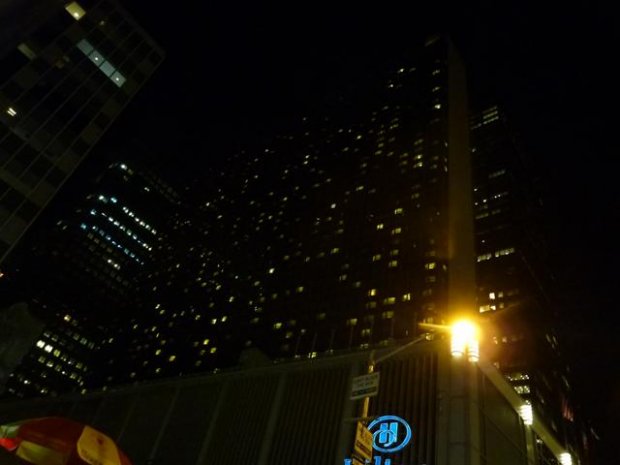 Wir erreichen unser Hotel Hilton Midtown Manhattan (6th Ave/52nd) - 55$ incl. Tip - schon mit Nackenstarre vom Nach-Oben-Schauen.Das Bild ist vom Taxi aus aufgenommen und dementsprechend furchtbar schlecht, aber es ist unser erster Blick...