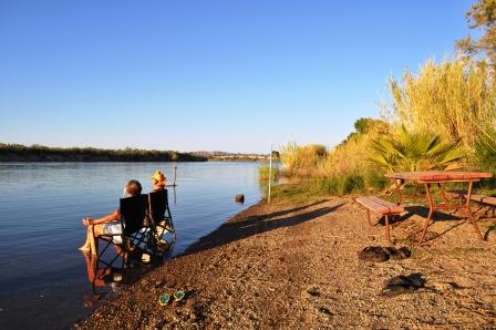 Nun geht’s ab zum Pool wo wir bis 18:00 Uhr schwimmen und lesen. Nach dem Poolbesuch gehen wir noch ans Ufer des Colorado River. Wir sind erstaunt wie warm das Wasser ist. Papa und Tochter nehmen vom flachen Sandstrand aus auch hier noch ein Bad.