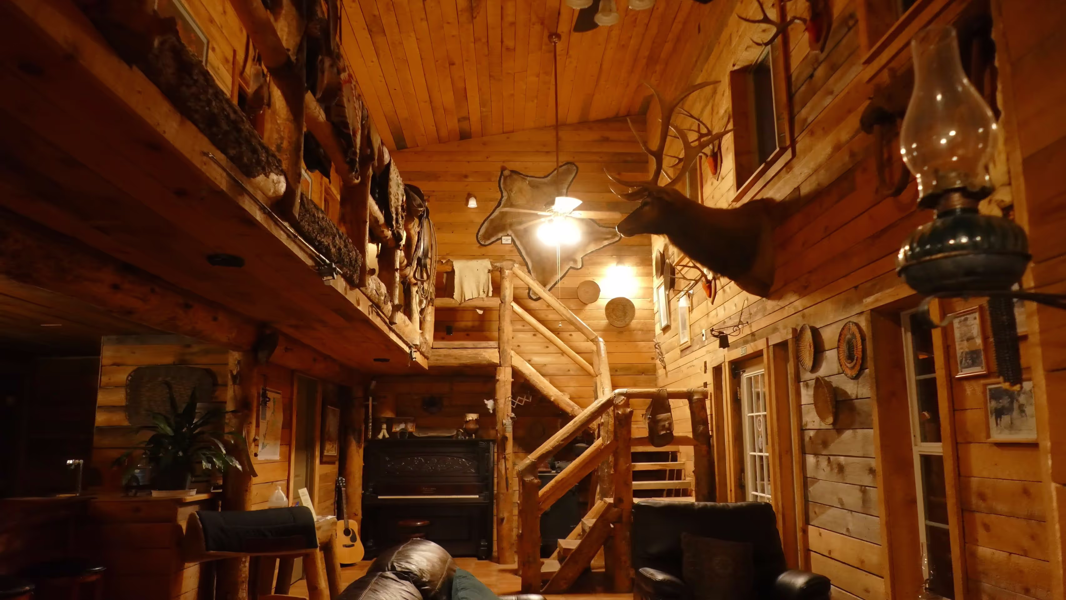 Draußen ist es schon stockfinster. Der Wind raschelt in den Bäumen, das Holz im Gebälk knackt leise, irgendwo quietscht eine lose Dachrinne. Die Schatten der Petroleumlampen tanzen an den Wänden, werfen lange, verzerrte Silhouetten über ausgestopfte Tierköpfe und die alten Winchester-Gewehre.