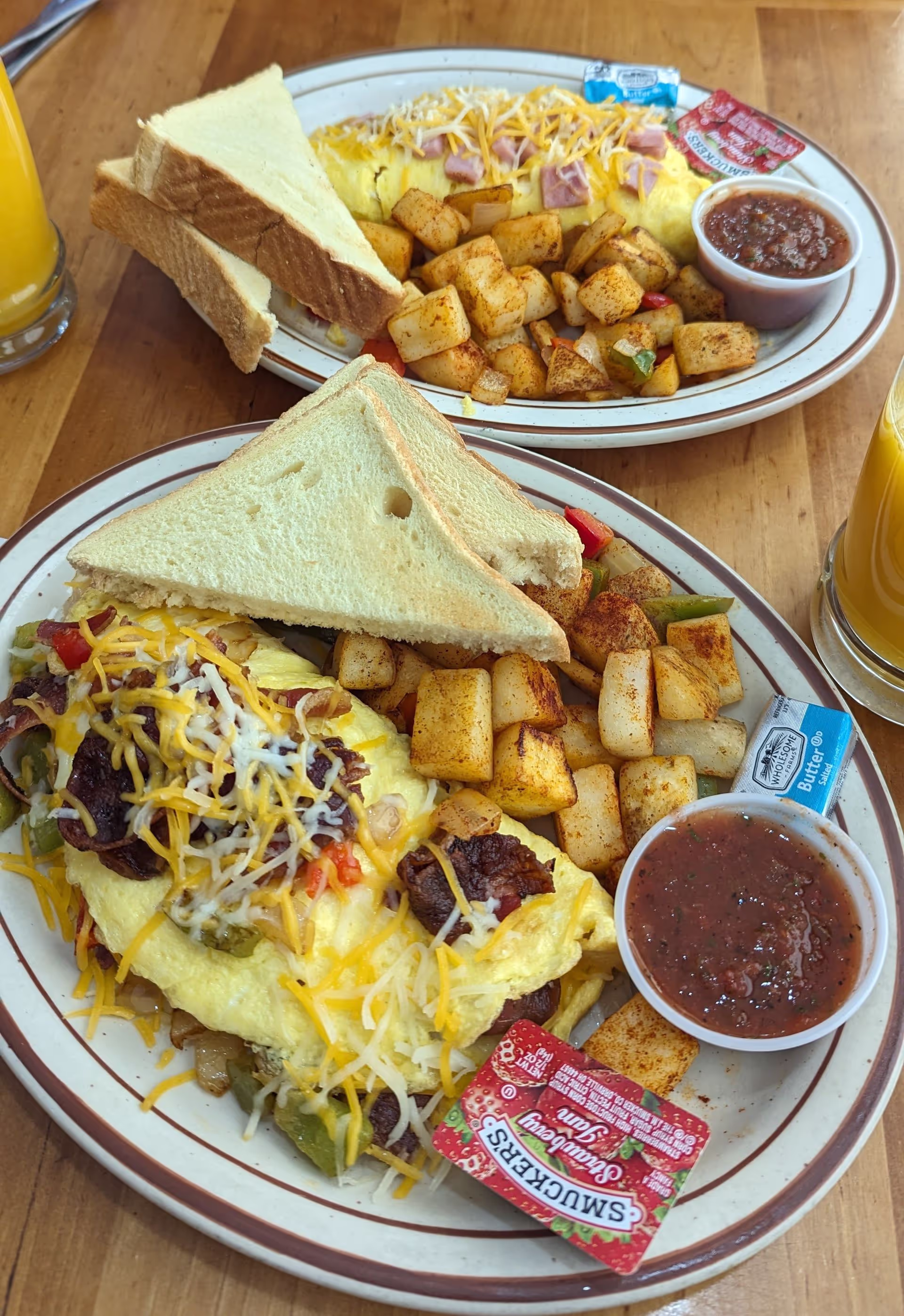 Dann stürmen wir das "Moab Diner" und ordern ein deftiges Burrito Frühstück mit home fries.