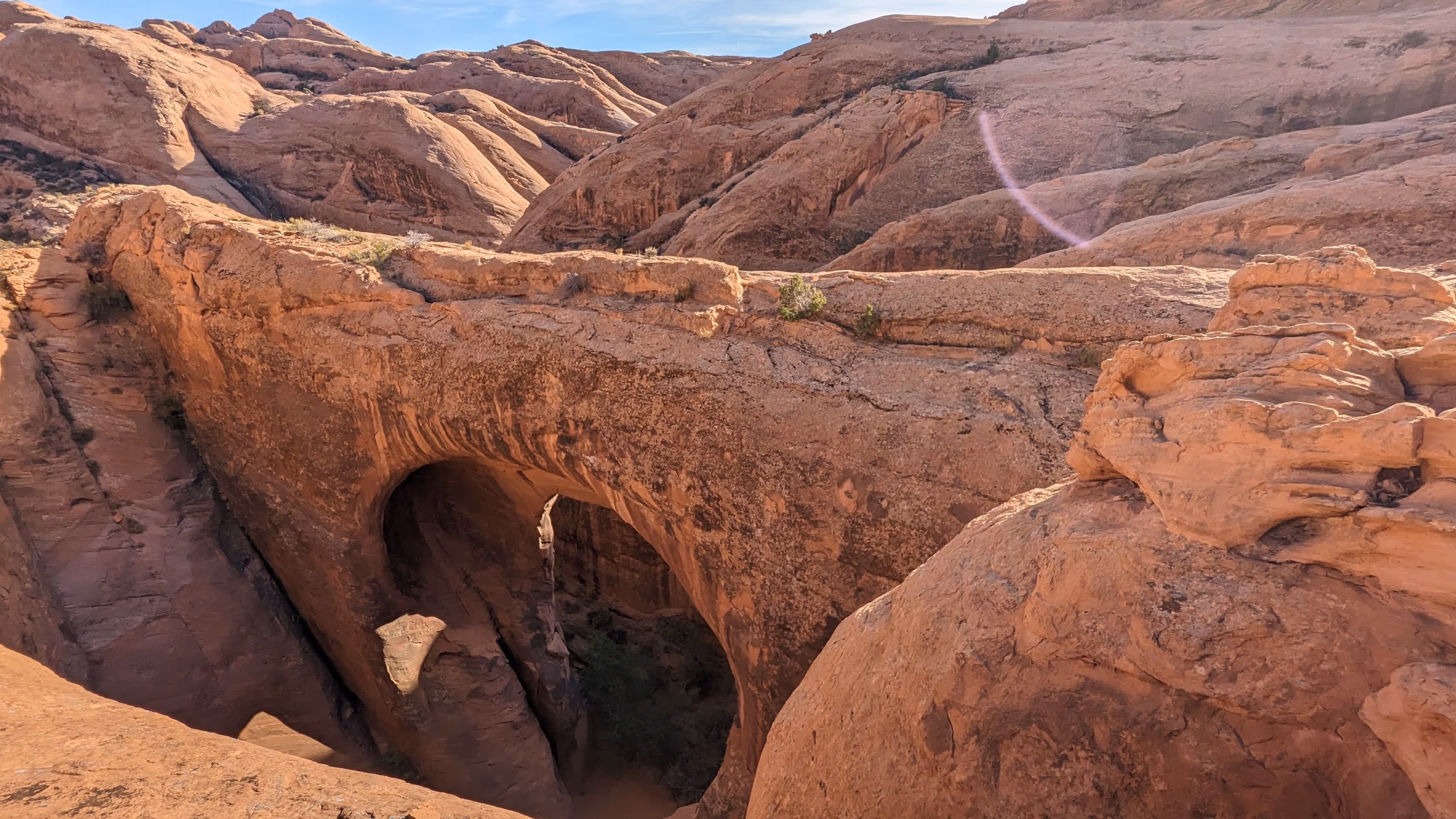 Wir hatten insgesamt nur eineinhalb Regentage (von 43), aber der eine "Ausruhtag" war zu verkraften. Leider hat uns eine zwischenzeitliche Kälteperiode (-8C° am Elk Ridge Pass) ein wenig zum Improvisieren gezwungen (Paranuweap und Salt Creek Wanderungen wurden gestrichen), aber wie gesagt, es gibt wohl kaum einen geeigneteren Ort zum improvisieren als in und um Utah, denn dort gibt es ja an jeder Ecke was zu erleben!