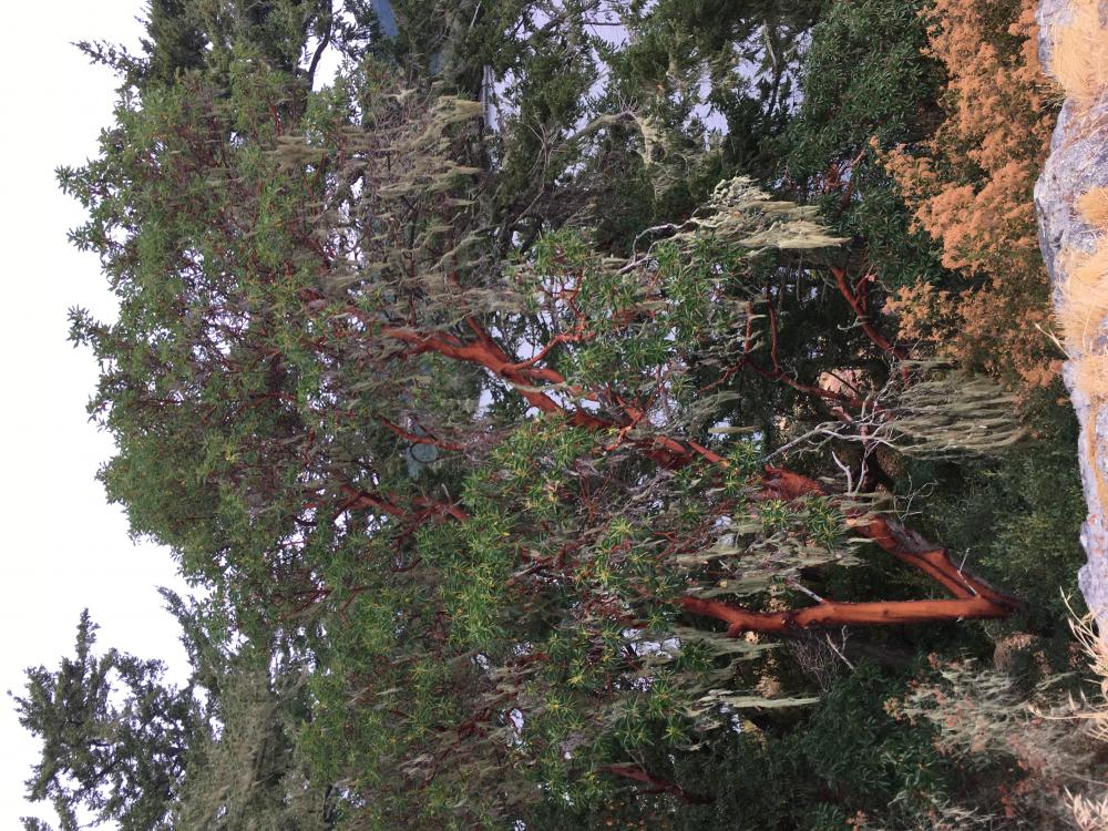 Ein letztes Mal hatten wir uns eine größere Wanderung vorgenommen, um ein bisschen am West-Coast-Trail-Feeling zu schnuppern. Der Weg führte uns vom Aylard Farm Parkplatz entlang der Küste der San Juan de Fuca Strait zum Beechy Head. Die Sonne blinzelte zwar nur selten durch die Wolkendecke, aber die Aussichten auf Meer und Olympic Mountains waren trotzdem eindrucksvoll. Besonders erregten die zahlreichen Erdbeerbäume mit ihrer roten Rinde unsere Aufmerksamkeit.