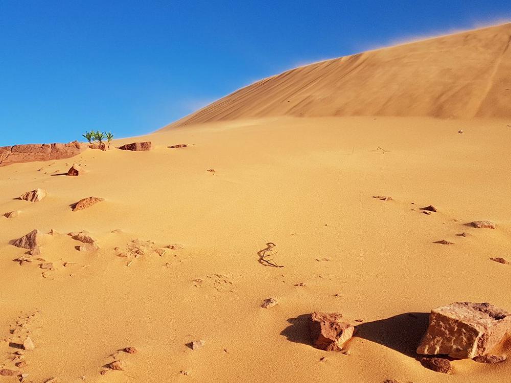 Nach einer kurzen Stärkung ziehen wir los und versuchen die Dünen zu erklimmen, was aufgrund des mittlerweile aufgekommenen starken Sturms nicht wirklich einfach ist. Nun wissen wir, wie der Begriff „sandgestrahlt“ zustande kam.