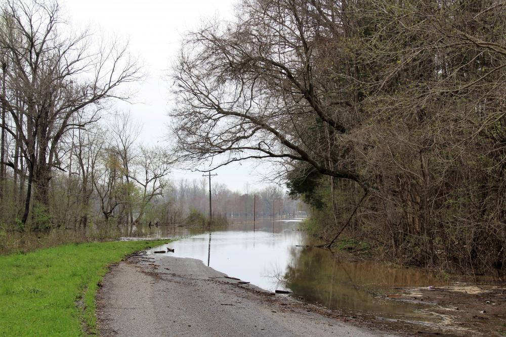 Wir wollen heute auf dem Campingplatz des Grand Gulf Military Monument Park übernachten und uns morgen früh das Museum ansehen. Nun fahren wir einen normalen Highway Richtung Süden. Dann biegen wir ab in Richtung Mississippi. Aus den Augenwinkeln habe ich ein kleines Hinweisschild gesehen, dass die Historic Site geschlossen ist. Nach etwa sieben Meilen kommt ein Schild „Road under water“. Tatsächlich ist kein Durchkommen, alles ist überflutet.