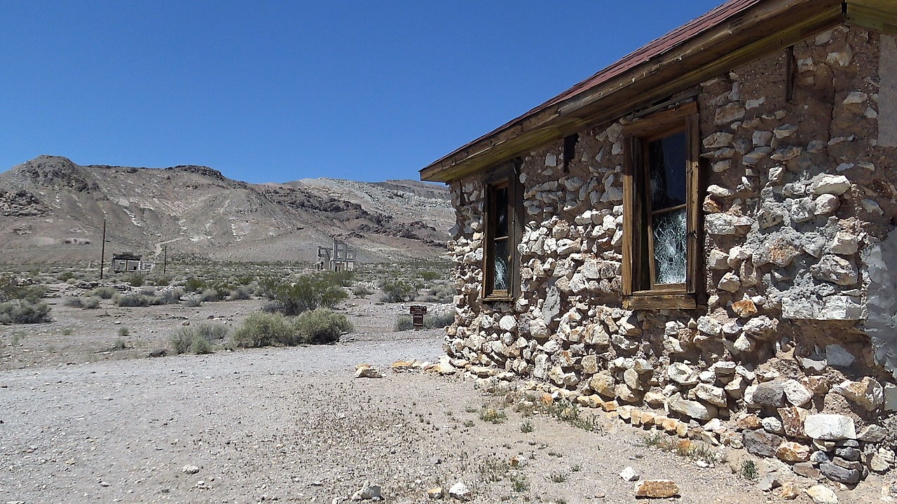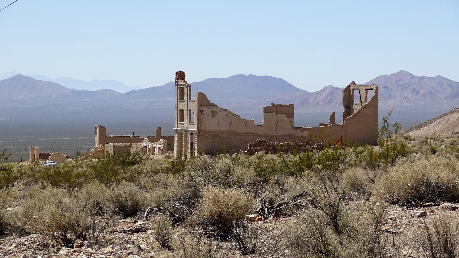 Leider fahren wir aus dem Death Valley heraus und sind wieder in Nevada. Dann biegen wir nach Rhyolite ab. Dies ist eine Geisterstadt, die um 1900 ihre Blütezeit hatte.