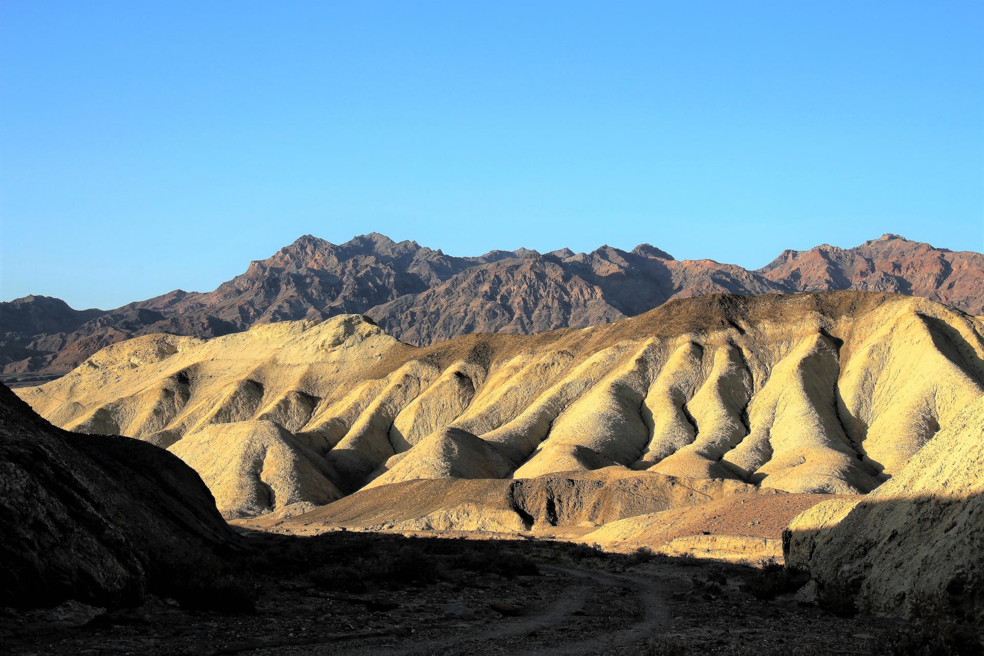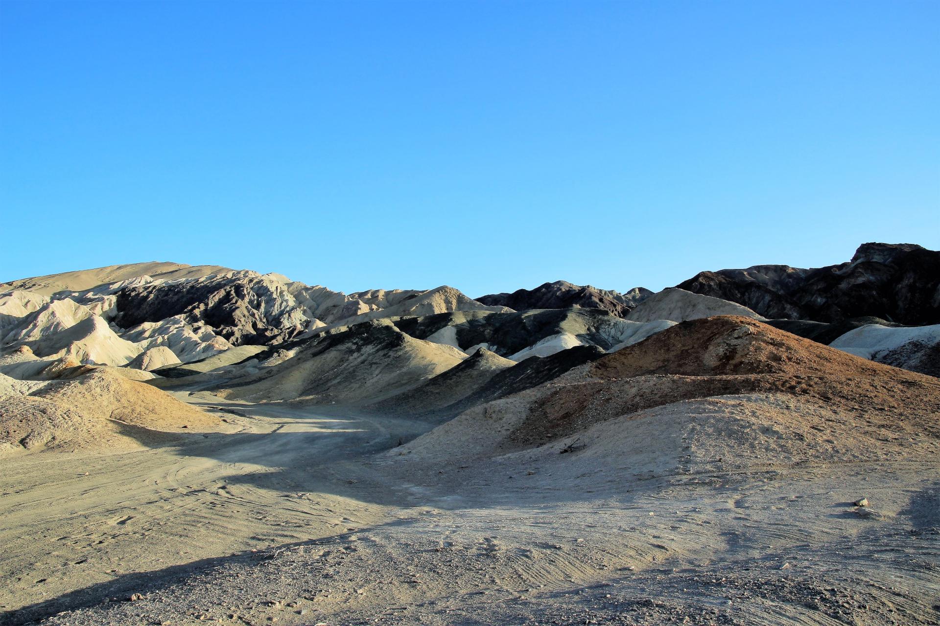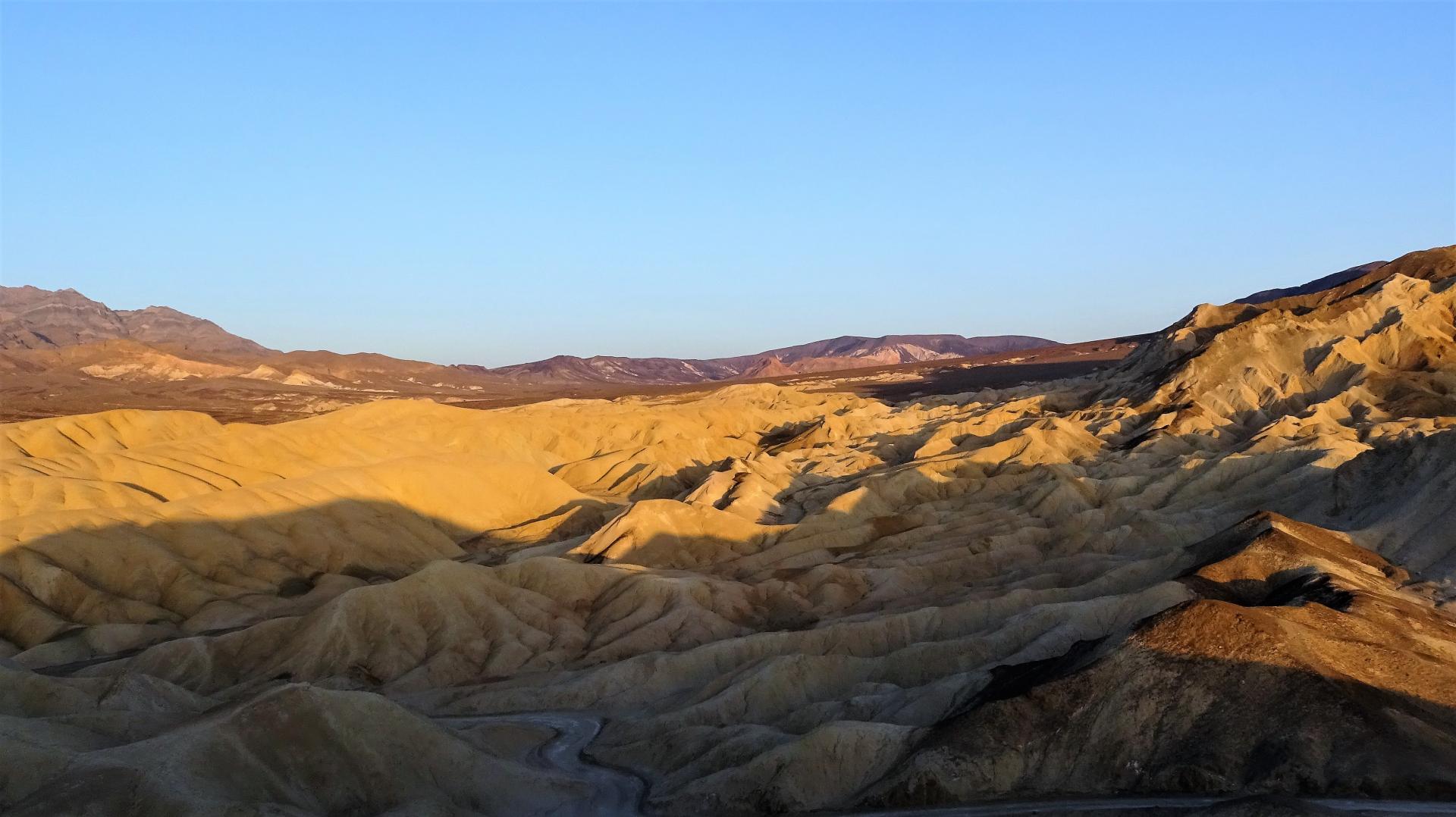 Der heutige Tag beginnt wieder um sechs Uhr. Jeder frühstückt für sich allein und um 8 Uhr geht es los. Wir freuen uns aufs Death Valley und auf ein Wiedersehen mit dem Zabriskie Point, der uns das letzte Mal so beeindruckt hat. Mit Mike haben wir darüber schon im Vorfeld gesprochen. Der Himmel ist wolkenlos und es sind angenehme 17°C. Auf Anraten von Mike tanken wir noch einmal voll, auch wenn es sich nicht lohnt, aber in Kalifornien sind die Preise um einiges höher.