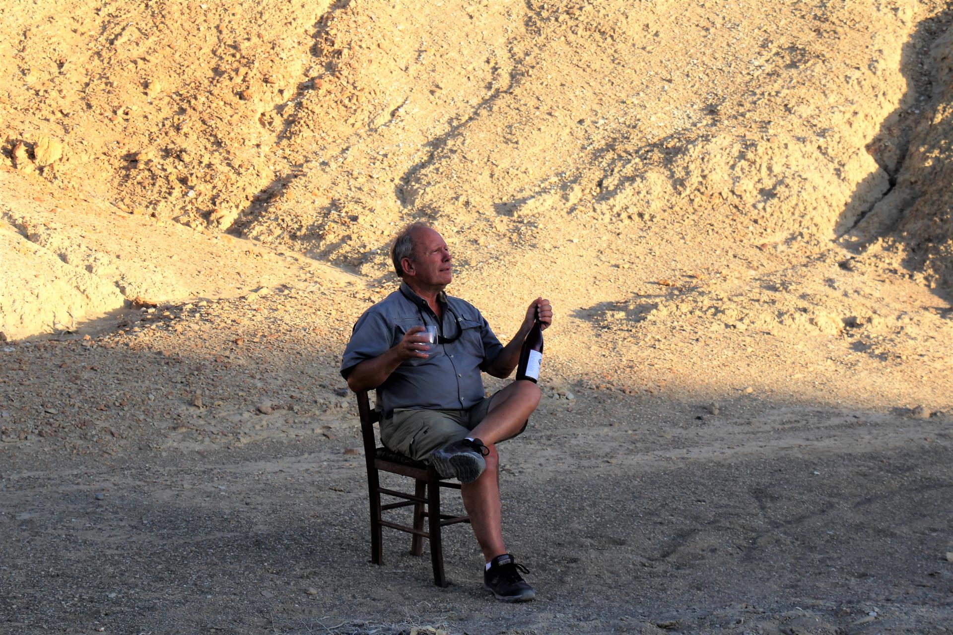 An einem Punkt fährt Mike von der Fahrbahn ab und hält an. Wir steigen aus und schauen uns um. Mike sagt Gladys sie möchte doch die Flasche Wein holen. Ich denke, das ist ja mal eine wirklich schöne Idee von Mike. Gladys bringt die Flasche und ein Glas dazu. Mike nimmt beides und setzt sich auf einen Stuhl, der hier herum liegt und lässt sich erst einmal ausgiebig fotografieren. Die Flasche Wein ist leer und praktisch nur eine Attrappe. Also habe ich ihn wieder überschätzt. Nach dieser „Fotoorgie“ sehen wir uns noch etwas um und machen schöne Fotos. Etwas entfernt ist ein alter Stollen zu sehen, den Mike, Gladys und Norbert sich von außen näher betrachten.
