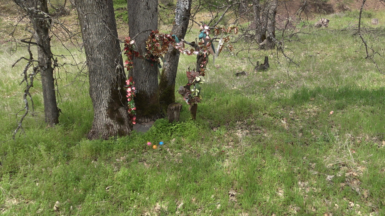 Nun geht es ständig bergauf und wieder bergab. Schließlich biegen wir auf den Hwy 3 ab. Es geht durch eine wunderschöne Landschaft, wenn wir durch die vielen Kurven auch nur langsam vorankommen. Wir haben ja Zeit und niemand hindert uns am einfachen Genießen der Fahrt. Die meiste Zeit sind wir fast allein. Ich komme mir vor, wie auf den Weg zu den „sieben Zwergen über die sieben Berge“. Auf einer Höhe machen wir einen kurzen Stopp und essen eine Kleinigkeit. Nebenan auf der Wiese scheint jemand Ostern gefeiert zu haben. Einige Ostereier liegen noch herum.