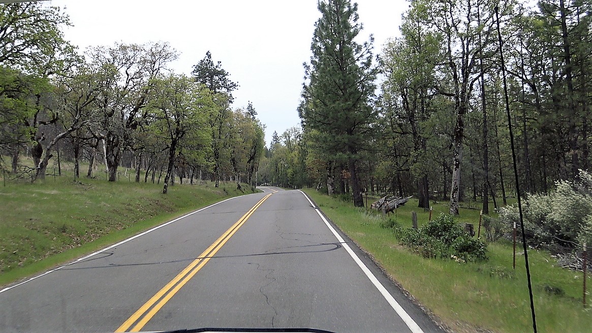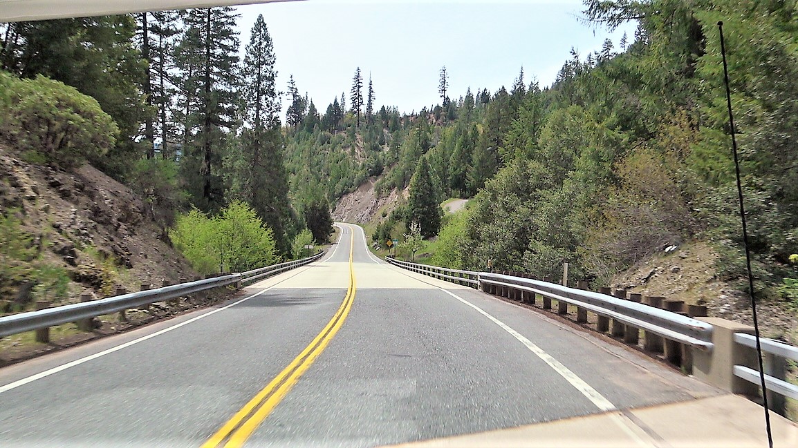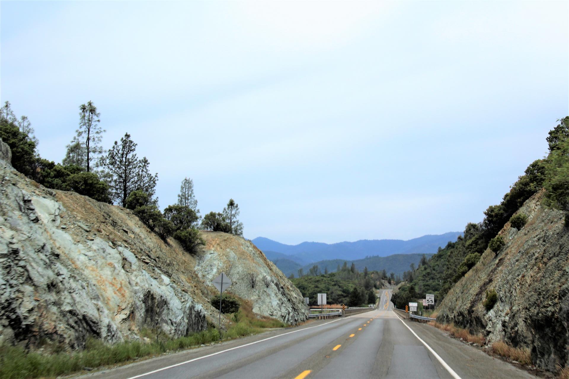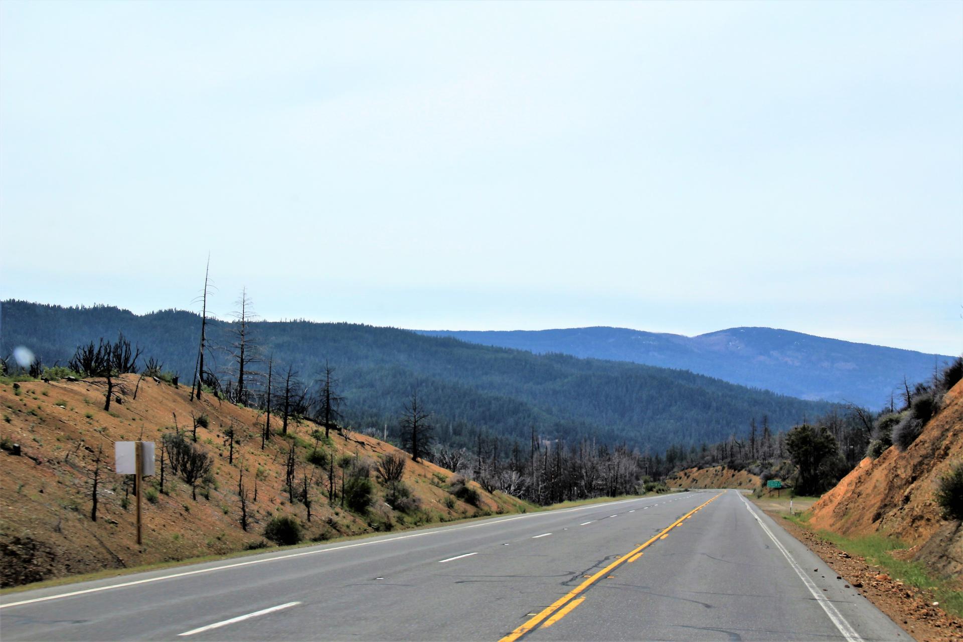 Dann geht die Fahrt weiter über die Berge mit vielen tollen Aussichten. Wir kommen nun auf den Hwy 36, den wir eigentlich direkt hätten fahren können. Aus den Augenwinkeln sehe ich ein Schild mit dem Hinweis einer Straßensperrung. Wir fahren aber trotzdem weiter, denn es ist die einzige Straße. Inzwischen sind wir bereits 100 km über Berg und Tal gefahren.