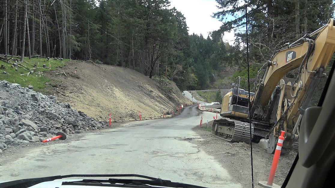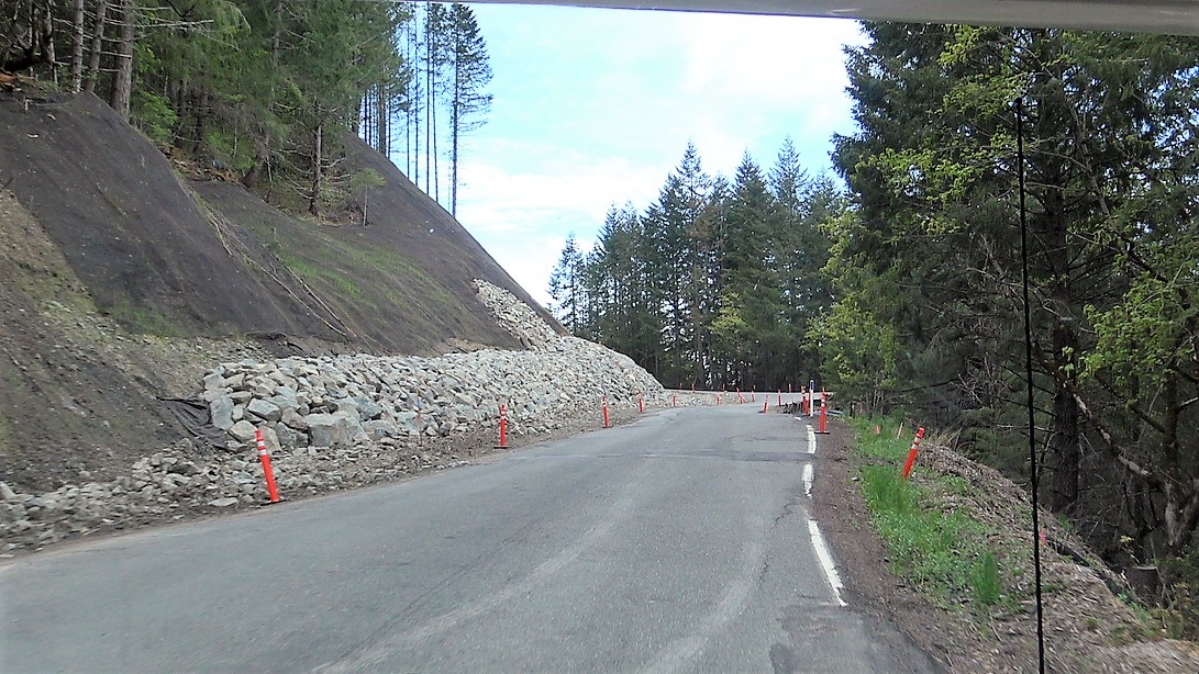 Nun erreichen wir die Baustelle, Autos kommen uns entgegen, also müssten wir fahren können. Dann sehe ich noch ein Schild, worauf steht, dass sie von Montag bis Freitag gesperrt ist und täglich nur um die Mittagszeit für eine Stunde öffnet. Puh ein Glück das heute Samstag ist. Nun fahren wir in den Baustellenbereich und es ist eine furchtbare Rumpelstrecke. Zwischen der aufgerissenen Straße müssen wir uns den Fahrweg suchen, teilweise geht es nahe am Abgrund vorbei. Mir wird ganz mulmig und ich versuche nicht in die Tiefe zu schauen. Unser Großer hängt manchmal ganz schön schief. Nach ca. 10 Meilen haben wir alles überwunden, aber es ist eine ganz schöne Zumutung, Fahrzeuge diese Strecke fahren zu lassen.