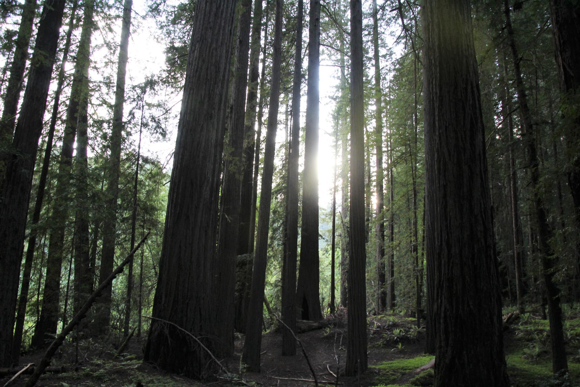 Nun kommen wir langsam in die Ebene und die Strecke wird gerader. Links und rechts der Straße stehen mächtige Redwoods. Diese Giganten sind beeindruckend.