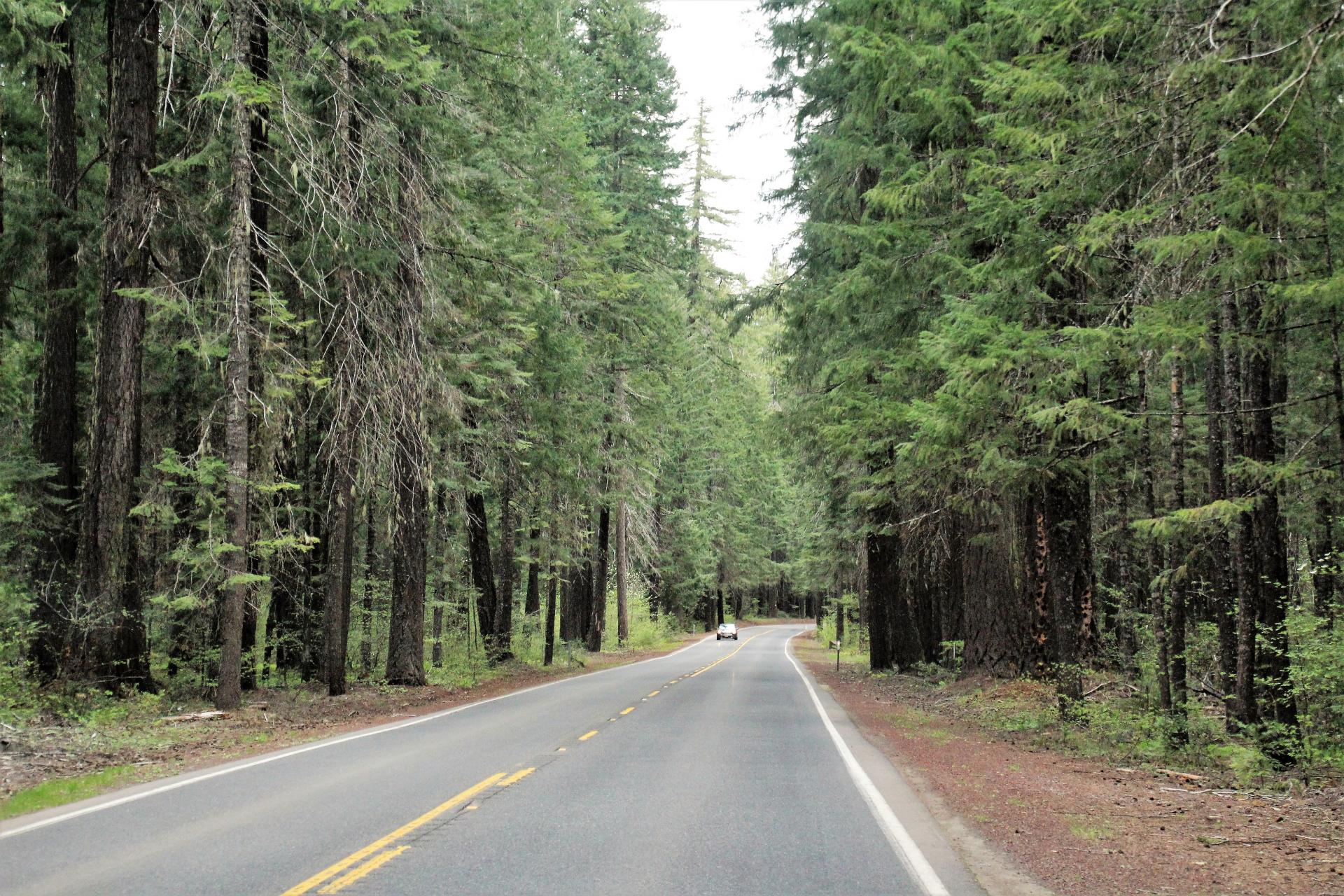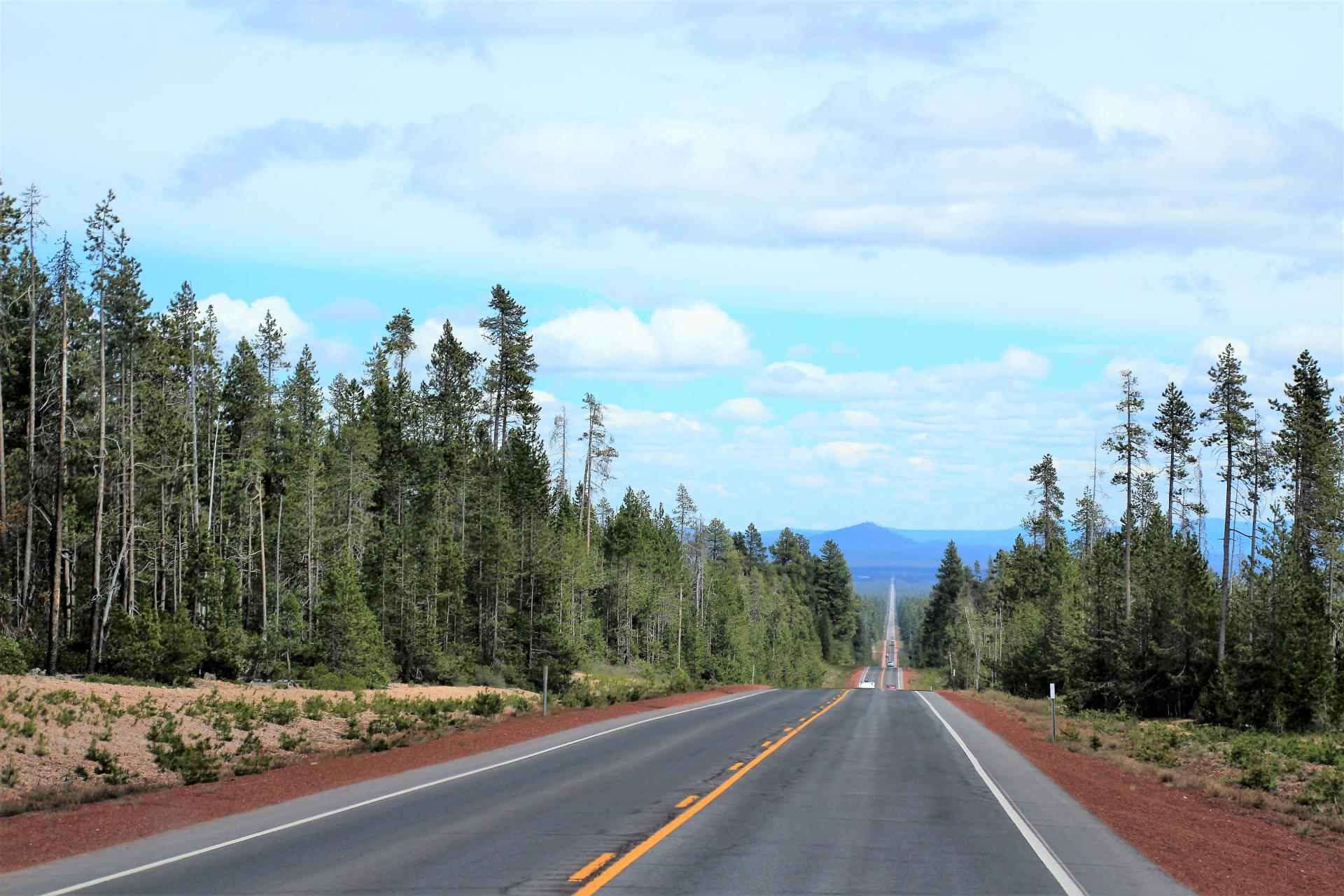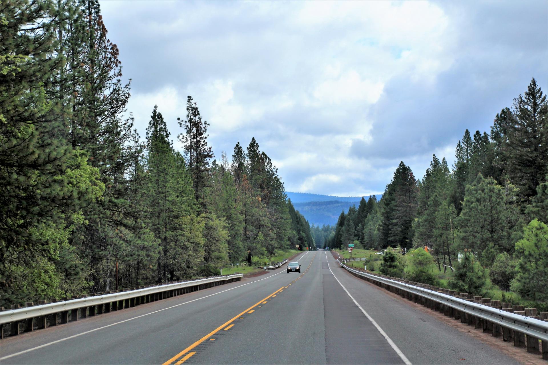 Nachdem unser Auto einigermaßen sauber ist, fahren wir los. Wir fahren auf dem Hwy 138 in Richtung Osten. Es geht vorbei an der Nordeinfahrt zum Crater Lake und dann schnurgerade, wie auf einer Berg- und Talbahn bis zum Hwy 97. Hier biegen wir in Richtung Norden ab.