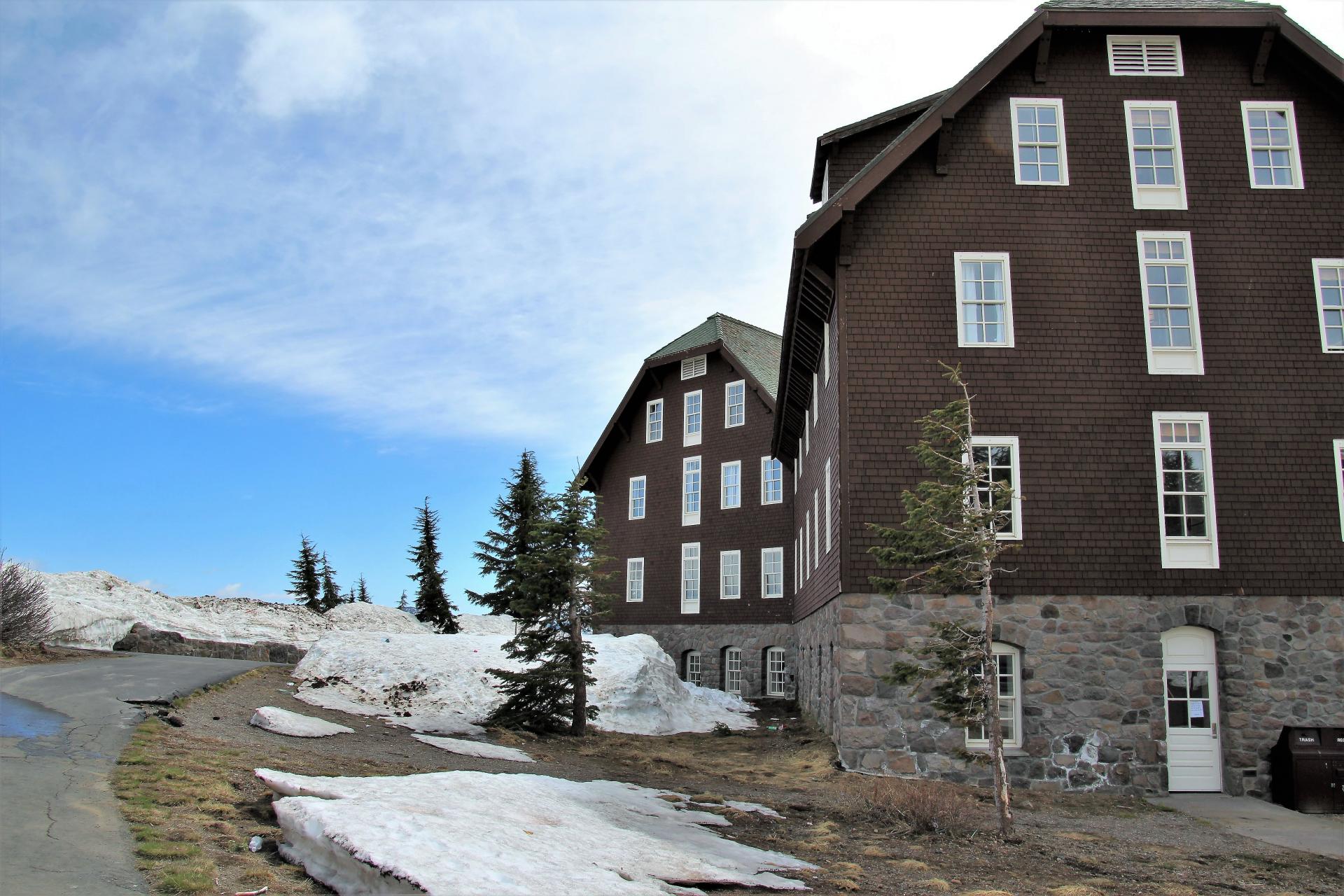 Viel laufen kann man hier durch den Schnee nicht, aber man hat immer wieder neue Eindrücke. Das Hotel ist noch geschlossen. In dem Restaurant sieht man eine Versammlung der Mitarbeiter, die wahrscheinlich von ihren Chefs auf die kommende Saison vorbereitet werden. Wir laufen die Runde so weit, wie der Schnee es uns erlaubt. Anschließend gehen wir eine Kleinigkeit essen und schauen uns im Shop um. Gegen 12 Uhr sind wir zurück am Wohnmobil und es sind inzwischen 12°C. Der Frühling scheint langsam Einzug zu halten, bei einer Höhe von 2.162 m dauert es eben etwas länger.