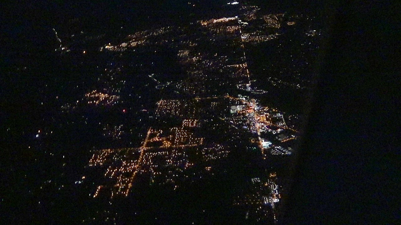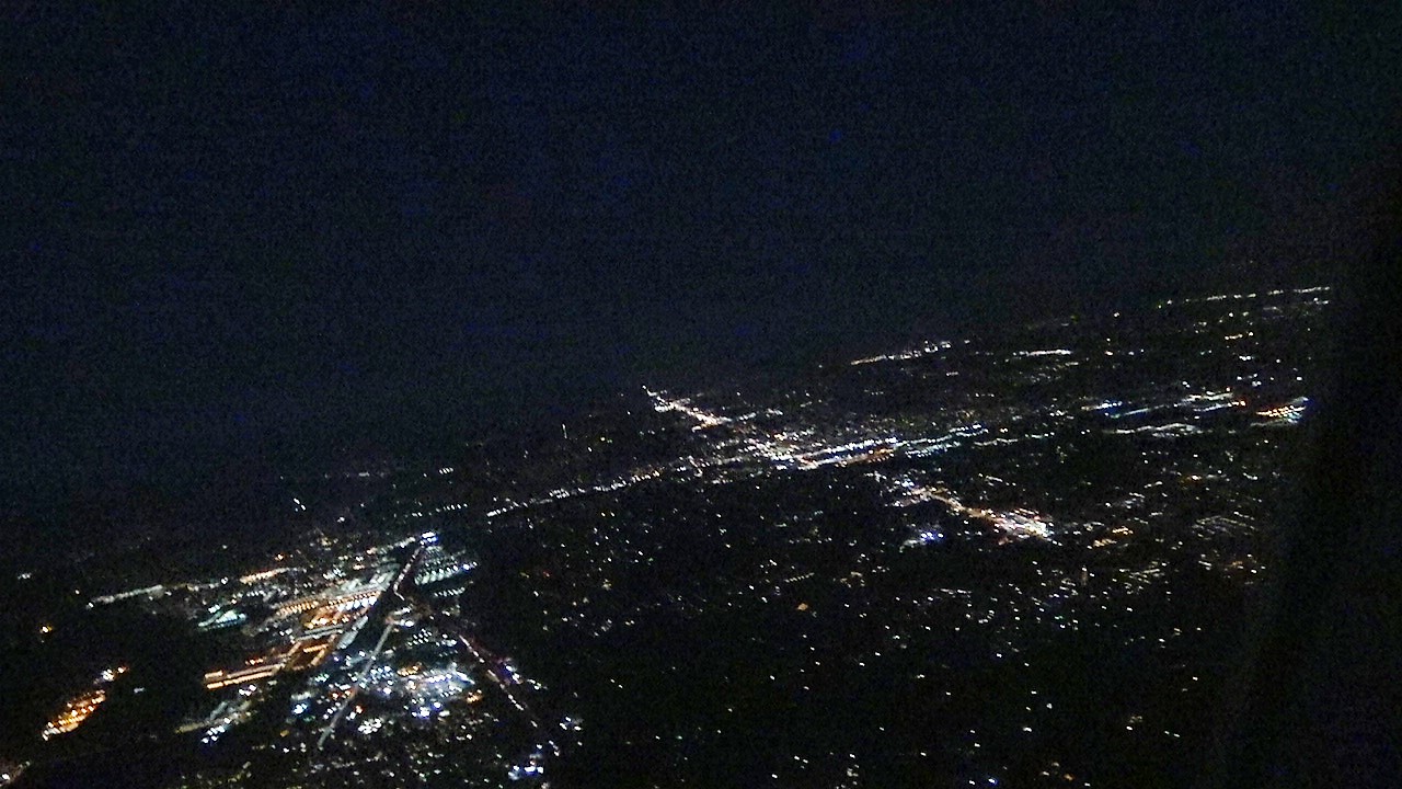 Gegen 22:15 Uhr fliegen wir mit fast drei Stunden Verspätung los. Na das wird wohl dann mit dem Anschlussflug nicht klappen. Unter uns sehen wir bereits im Dunkeln die Lichter von Seattle. Bye, Bye Amerika!