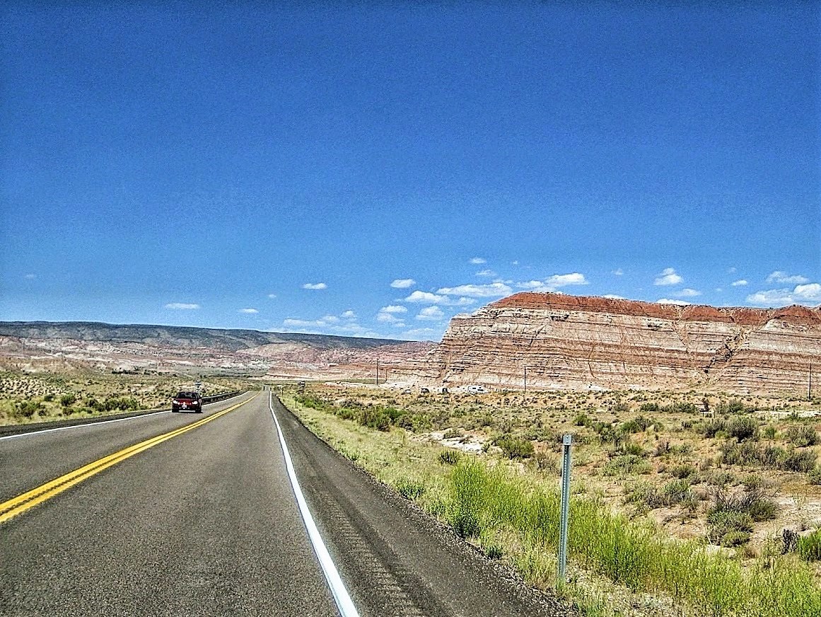 Da es gestern etwas spät geworden ist, schlafen wir bis halb acht. Frühstücken tun wir heute im Wohnmobil, da es draußen schon richtig heiß ist und es auch keinen Schatten gibt. Dann wird noch mal gedumpt und alles verstaut. Unser erster Weg führt uns zu Walmart. Wir bekommen tatsächlich eine Canon Kamera (EOS Rebel SL1). Ich bin jetzt glücklich, wieder einen ordentlichen Fotoapparat zu haben. Dann bekommt auch Monti noch sein “Futter” und es geht los auf dem Hwy 89 in Richtung Norden.