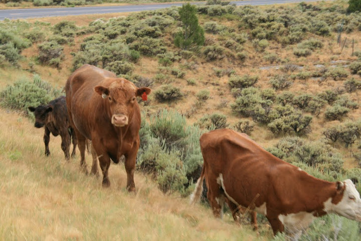 Die waren wohl irgendwo ausgebüxt....ein paar Meilen weiter tarfen wir weitere Rinder und einen plattgetretenen Weidezaun