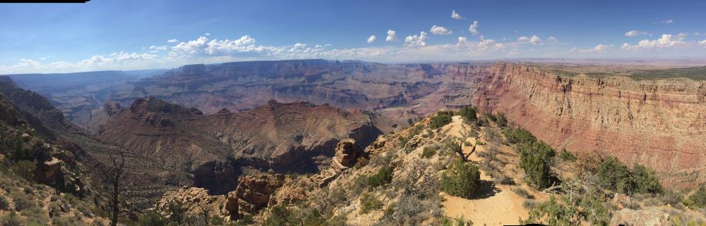 Das Land zwischen Page und dem Grand Canyon gehört fast alles zum Reservat der Diné (und Hopi), und wir sehen viele elende Baracken, kaputte Womos und Wohnwagen. Alte Trailer und Unmengen kaputter Autos sind überall in der Landschaft verstreut. Nur ab und zu sieht man ein etwas gepflegteres Haus. Ich frage mich, wovon die Menschen hier eigentlich leben. Es gibt kaum Pflanzen, alles ist vertrocknet und Tiere sieht man auch keine (sie hätten ja auch nichts zu fressen). Immer wieder sieht man am Straßenrand Stände, wo Schmuck und anderes verkauft wird.