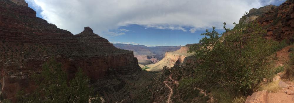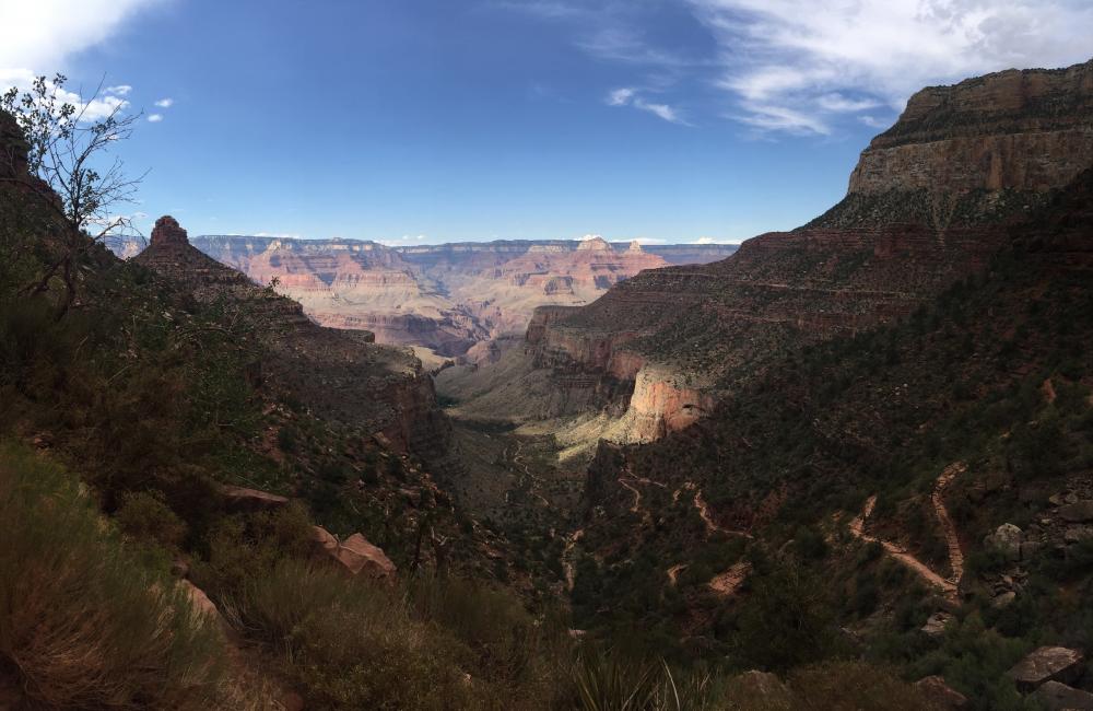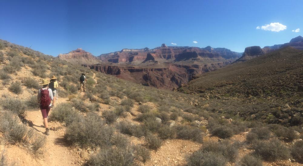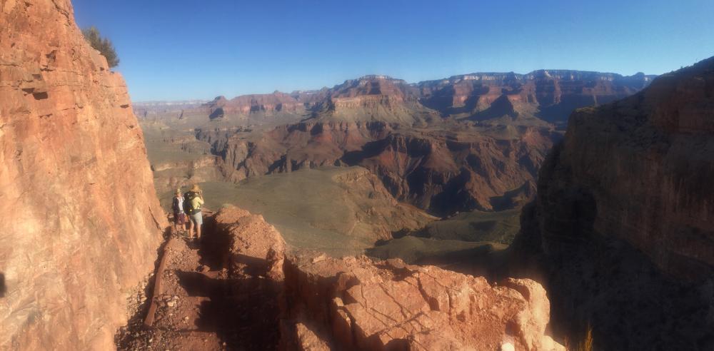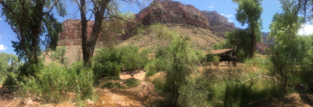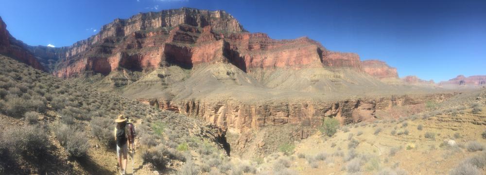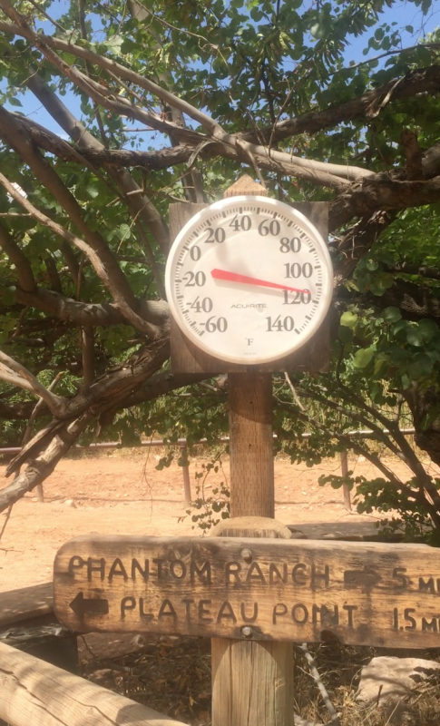Den Tonto Trail, das schlimmste Stück weil ohne Schatten, sind wir von 9.30 bis 11.30 gelaufen, also nicht in der schlimmsten Mittagshitze. Gefährlich fand ich nur dieses Stück, der Rest war halt anstrengend. Von 11.30 bis 14.30 haben wir im Schatten im Indian Garden ausgeruht und das hat als Pause eigentlich auch gereicht.