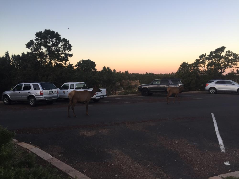Mit 2 shuttles geht es zum trail head des South Kaibab Trail, wo wir einige Hirsche sehen.