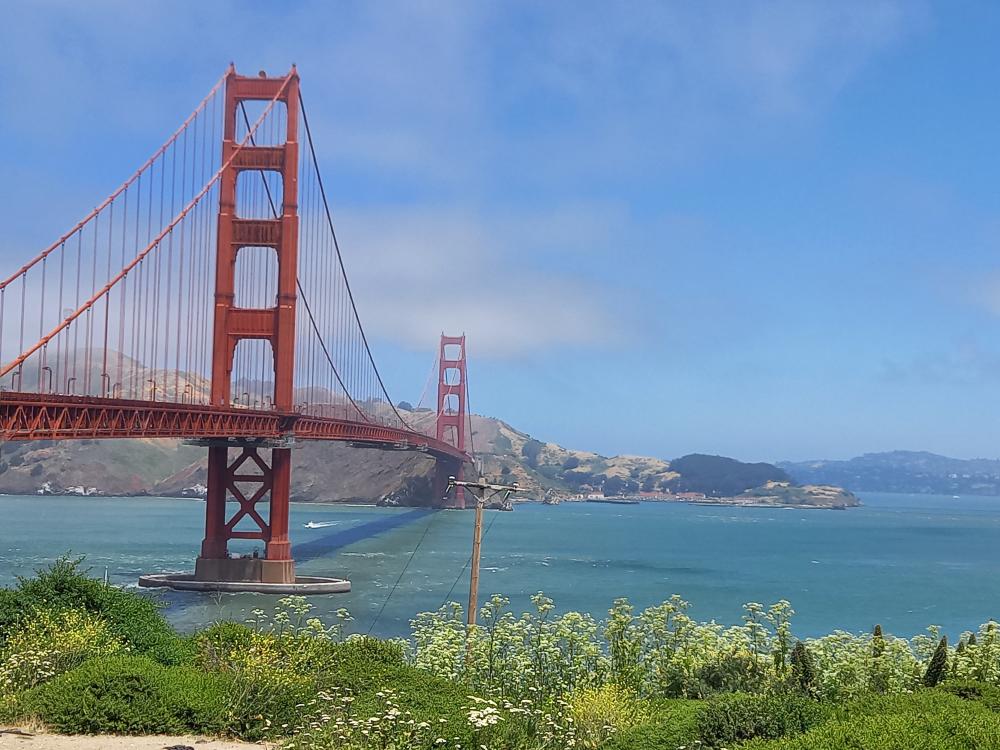Und wieder lacht die Sonne vom Himmel – was haben wir für ein Glück mit dem Wetter! Wir fahren mit dem Golden Gate Transfer Bus direkt zur Golden Gate Bridge. Hierfür gilt der Tagespass der Muni nicht, wir zahlen separat 5$. Dafür sparen wir uns aber das lästige Umsteigen. Der Anblick der Brücke ist immer wieder überwältigend. Zuerst sind noch viele Wolken da, aber bei dem starken Wind haben sie keine Chance. smiley Wir bleiben eine ganze Weile dort und genießen die Aussicht.