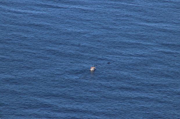 Von oben können wir Whale Watching Boote sehen und sogar die Wale lassen sich durch das Fernglas oder Tele erahnen.