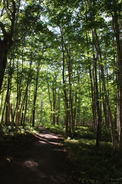 Anschließend spazieren wir durch den alten Zuckerahornwald. Die Stimmung unter den alten Bäumen ist toll.