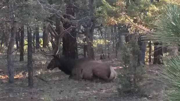 Der Elch lag nicht weit von uns entfernt - war so happy das wir im RV waren und nicht im Zelt.