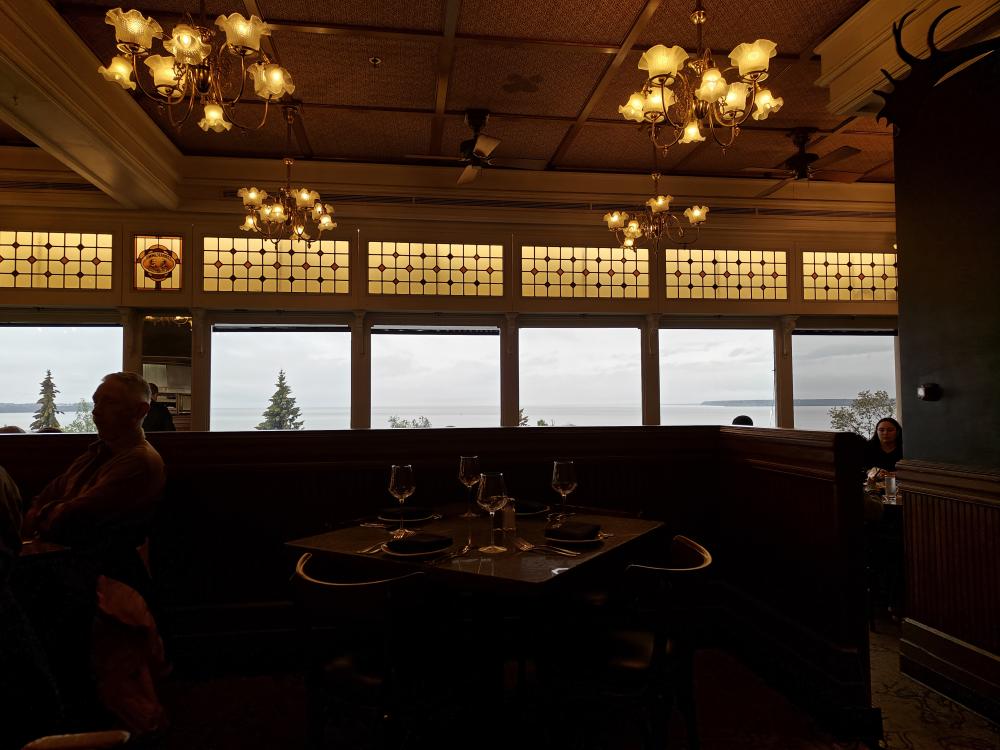 Danach geht es kurz in den Walmart einkaufen. Zum ersten mal ohne irgend einen Quatsch einzukaufen. Da es wie aus Kübel schüttete, assen wir auf dem Walmart Parkplatz im Wohnmobil zu Mittag und als der Regen nachliess, ging es weiter in die Innenstadt. Wir bummeln durch die Strassen, bestaunen die Souvenirshops mit den teilweise ganz hässlichen Artikel. Zumindest aus unserer Sicht und finden dann noch eine Ausstellung über die Nationalparks von Alaska. Wir vertreiben uns die Zeit und gehen gegen 17:00 Uhr zum Restaurant. Für unsere Reservation sind wir noch etwas zu früh und darum geht es zuerst an die Bar. Ein Bier später ist unser Tisch ready und wir können bestellen. Bis wir die Vorspeise bekamen, ging es sehr lange aber wir hatten direkten Blick auf das Meer, ein kaltes Getränk und noch ganz viel Urlaub. Schön wenn man so gar nicht gestresst ist und halt nochmals 20 Minuten wartet ohne es wirklich zu merken oder sich daran zu stören.