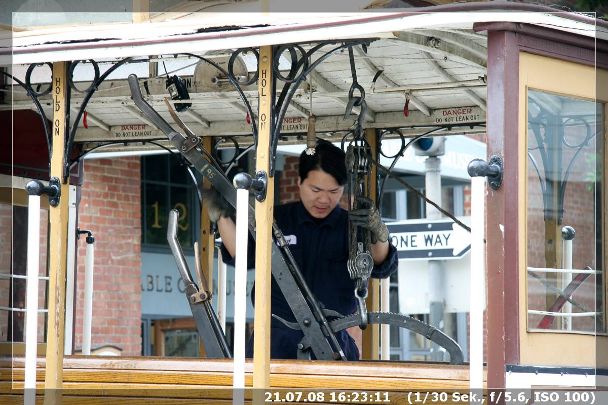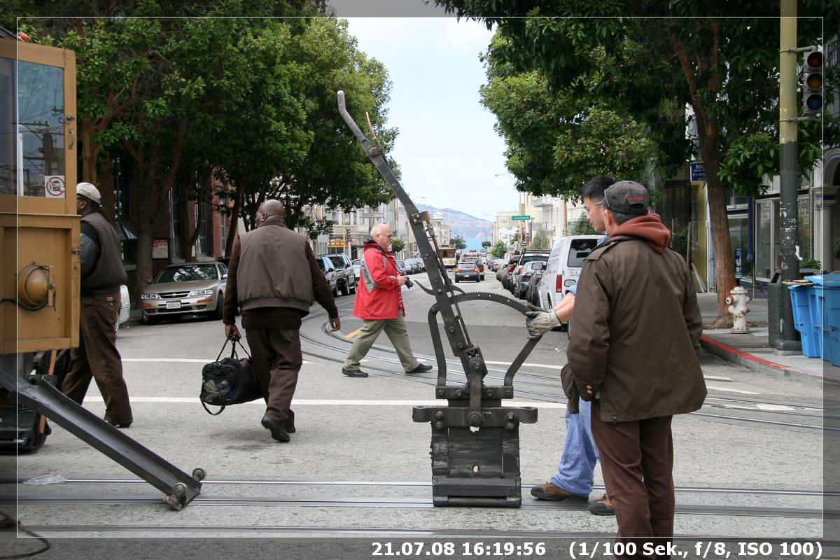 Dann wurden wir Zeuge einer on the fly Reparatur eines Cable Cars. Direkt vor dem Museum kam ein leeres Cable Car und hielt an, während dann die Techniker mit einer neuen Bremsanlage kamen. Diese wurde dann im laufenden Betrieb vor unseren Augen getauscht.