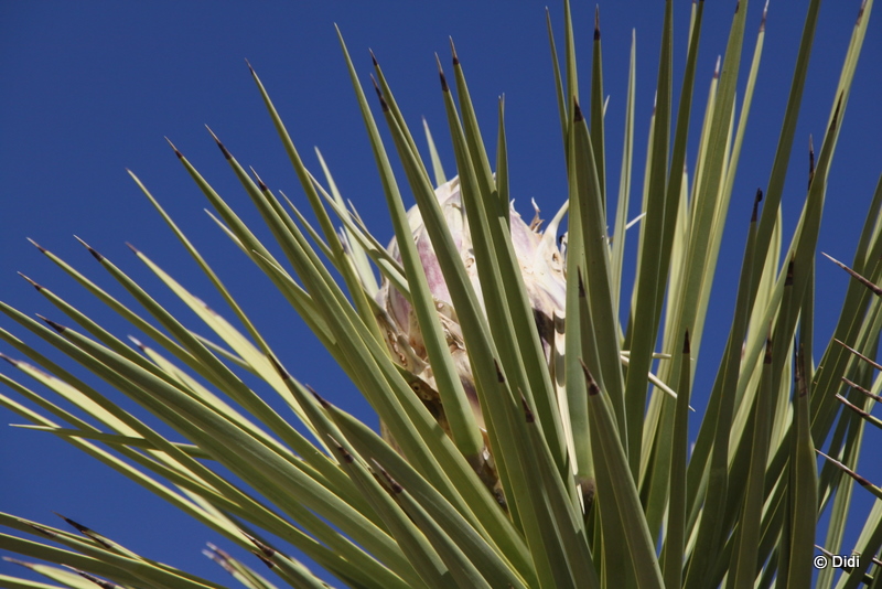 Beim Eintritt in den Nationalpark zahlen wir die 5 $ für das Motorrad und kurz darauf sehen wir einige blühende Joshua Trees