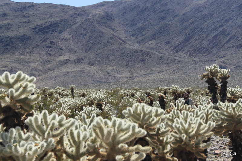 Wir fahren weiter Richtung Südausgang durch den Nationalpark. Das Fahren macht richtig Spaß. Die Straße ist an vielen Stellen ausgebessert worden, ich habe sie aus 2008 wesentlich schlechter in Erinnerung. Am Cholla Cactus Garden machen wir noch einmal halt und nehmen einen kurzen Einblick in diesen herrlichen „Kakteen-Wald“. Die „Bigelow Cholla“ sehen aus der Entfernung richtig kuschelig aus, weswegen sie auch oft als „Teddy Bear Cholla“ bezeichnet werden. Vom Kuscheln kann ich aber jedem nur abraten wink