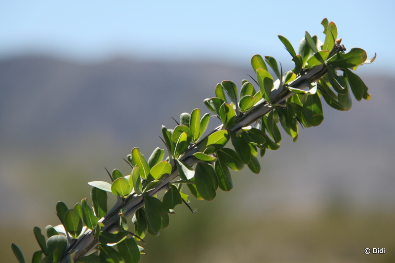 Zweig eines Ocotillo-Busches mit grünen Blättern