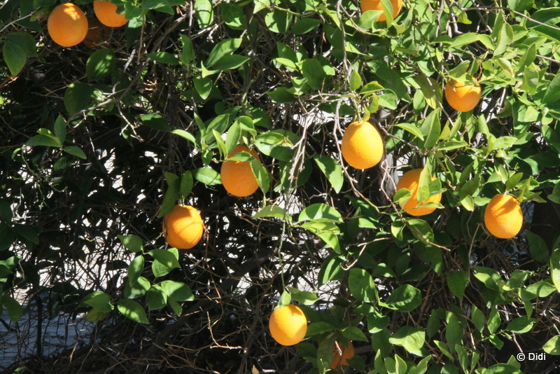 fruchtbehangenen Orangenbäume, was ein Kontrast!