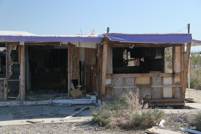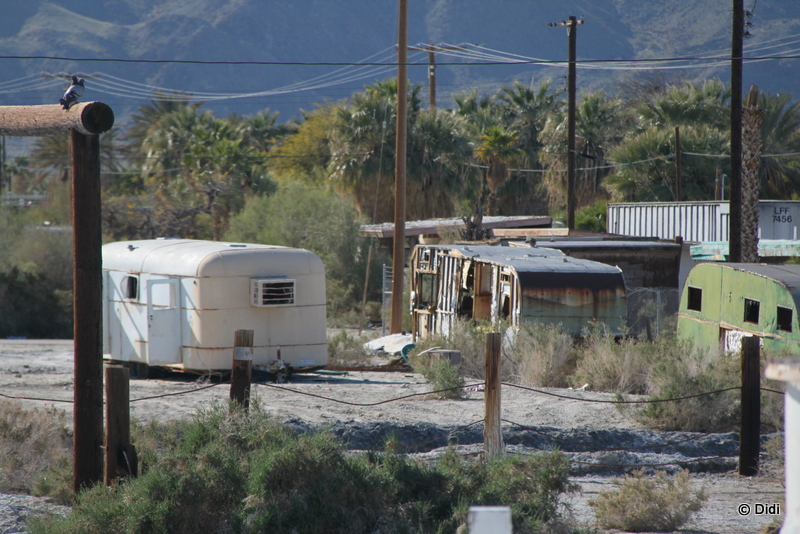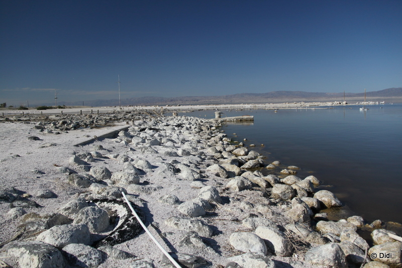 In Mecca stärken wir uns bei einer mexikanischen Fastfoodkette, bevor wir weiter Richtung Süden am ewig langen Salton Sea vorbeifahren. Wir machen kurz halt am Salton Sea Beach, der die Besten Zeiten wohl lange hinter sich hat wink