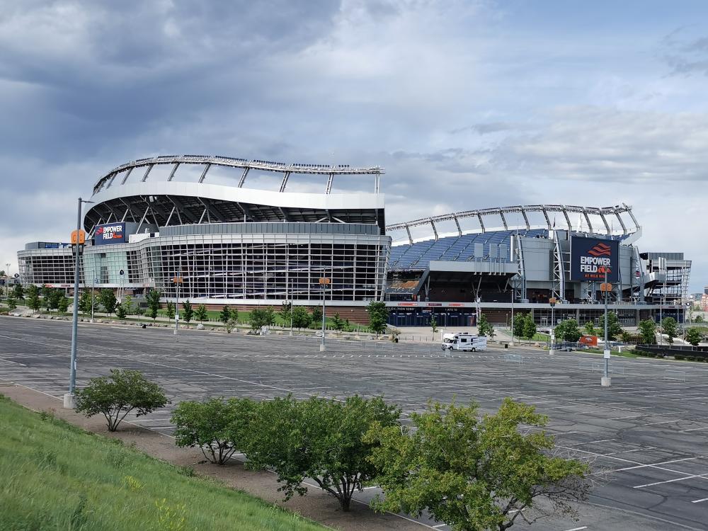 Am späten Nachmittag haben wir das Wichtigste abgeklappert und mein Sohn möchte unbedingt das Stadion der Broncos noch von außen anschauen. Also machen wir noch einen kurzen Abstecher dorthin, es ist ja eh um die Ecke unseres Parkplatzes.