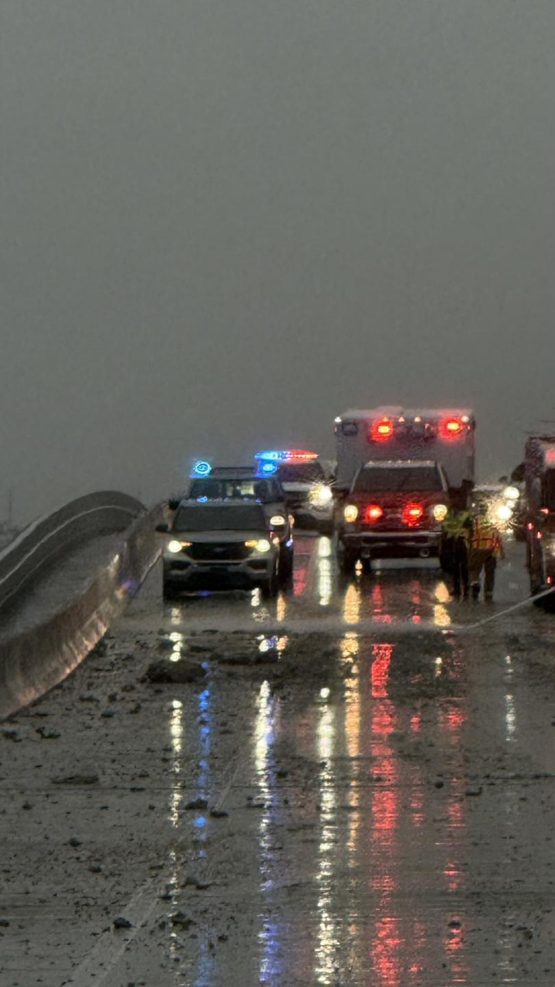 Nachdem wir mit unserem Auto am Straßenrand zum Stehen gekommen waren und die Lage gecheckt hatten, haben wir versucht, über Handy Polizei anzurufen, aber noch während wir dies versuchten, kam von hinten schon Polizei mit Blaulicht. Scheinbar wurden die von irgendjemand anderen bereits informiert. Den örtlichen Sheriff, den Abschlepper und auch die Behörde zur Statikprüfung hat dann der Police-Officer benachrichtigt. Das ging total flott, dass da sehr viele Einsatzkräfte auf der Brücke waren.